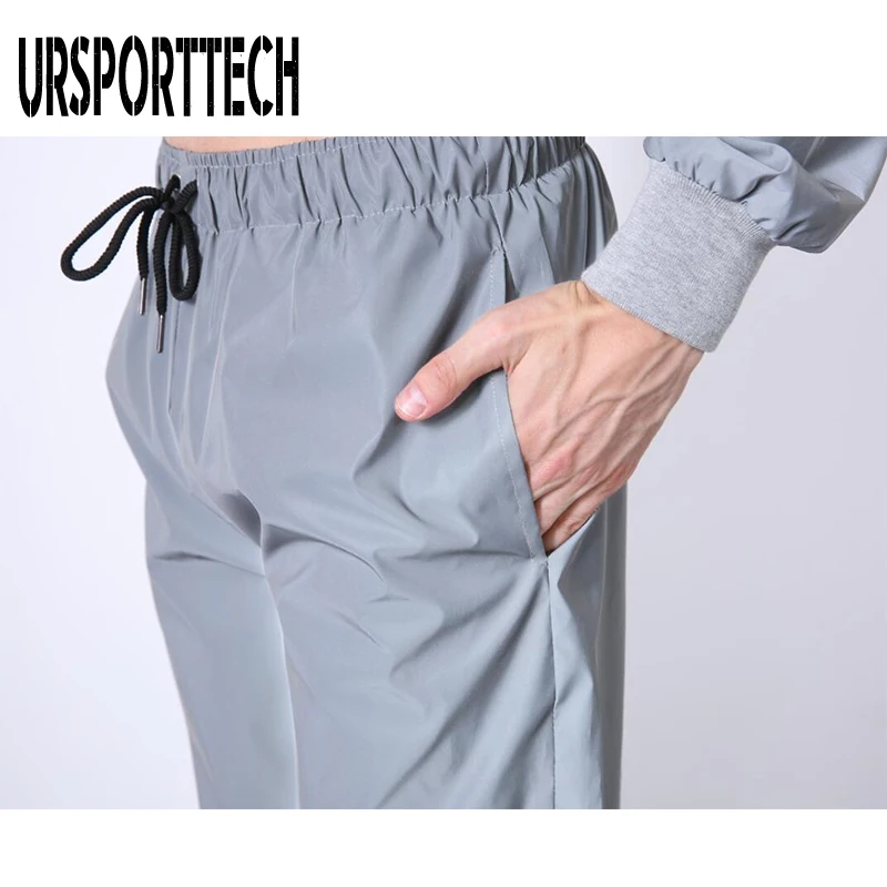 Мужские Светоотражающие Брюки-джоггеры URSPORTTECH, Осень-зима 2019, повседневные серые однотонные уличные брюки, модная одежда, большие размеры 3XL