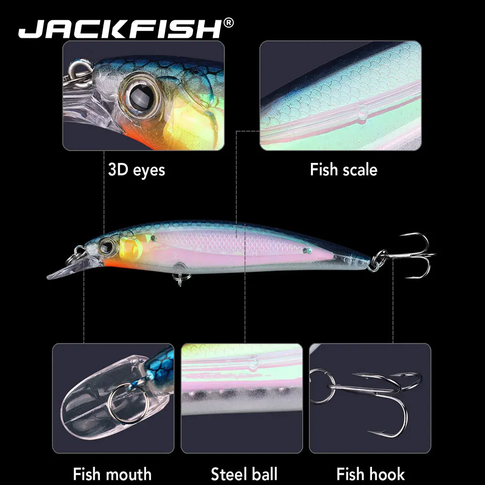 JACKFISH приманка в виде гольяна, 11 см, 14 г, плавающая искусственная жесткая приманка, воблеры для окуня, приманки воблер, щука, Тали с тройным крюком