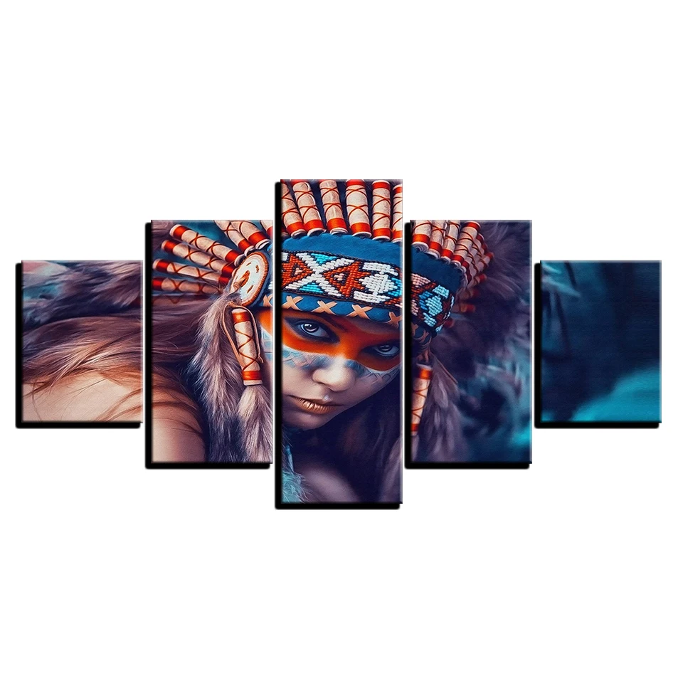 Куадрос Современная Рамочная украшения 5 Панель индейцев для девочек перо Арт холст Картина Рисунок на стену для Гостиная произведение искусства