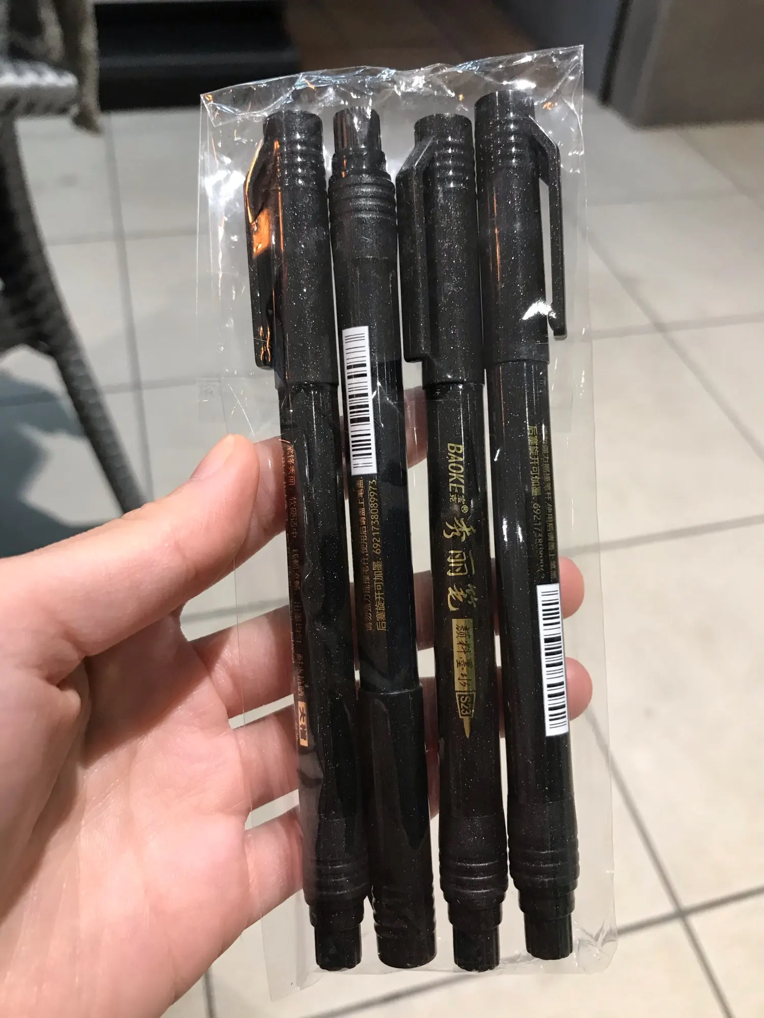 Мне очень нравятся эти ручки, они четыре разных толстых наконечника и прекрасно пишут, кроме того, очень мягкие. Они прибыли всего за 20 дней. Я полностью рекомендую его.