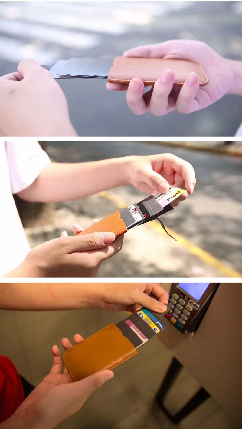 The wallet is not useful it is very hard to push the cards inside and when it’s spread it is almost impossible to take out The bottom card, I never got around to use it because of the reasons I mention, And because it’s very clumsy I found the commercial specially the video very misleading that’s all so if it was a little harsh