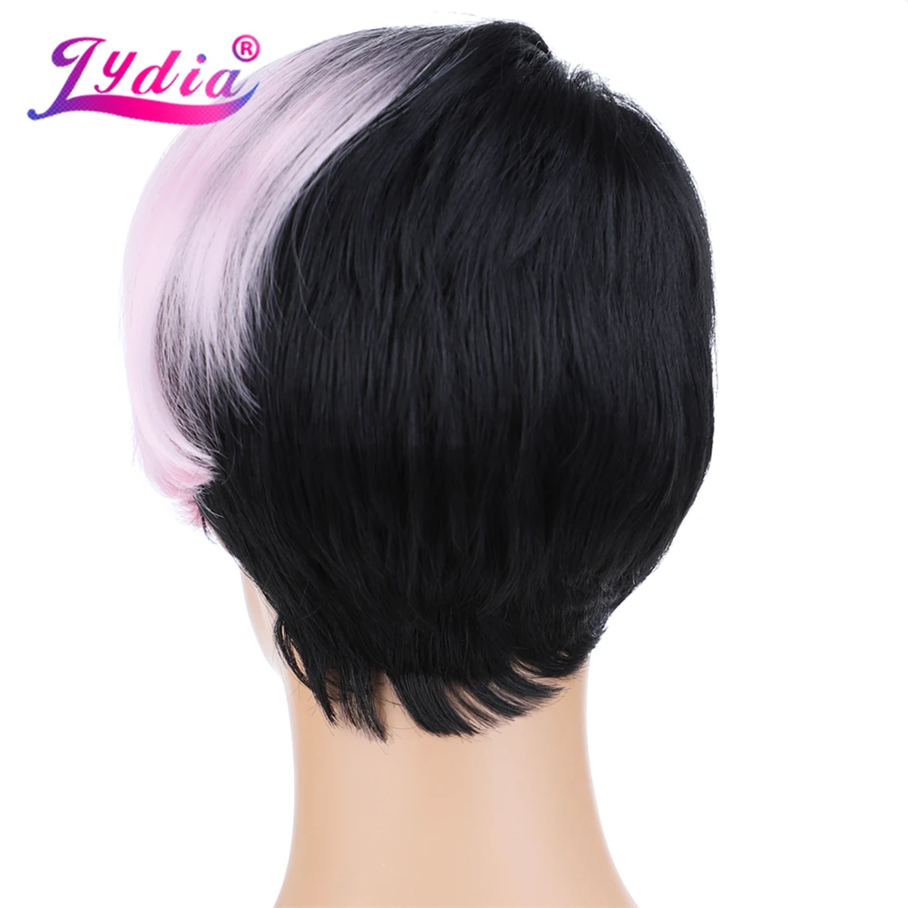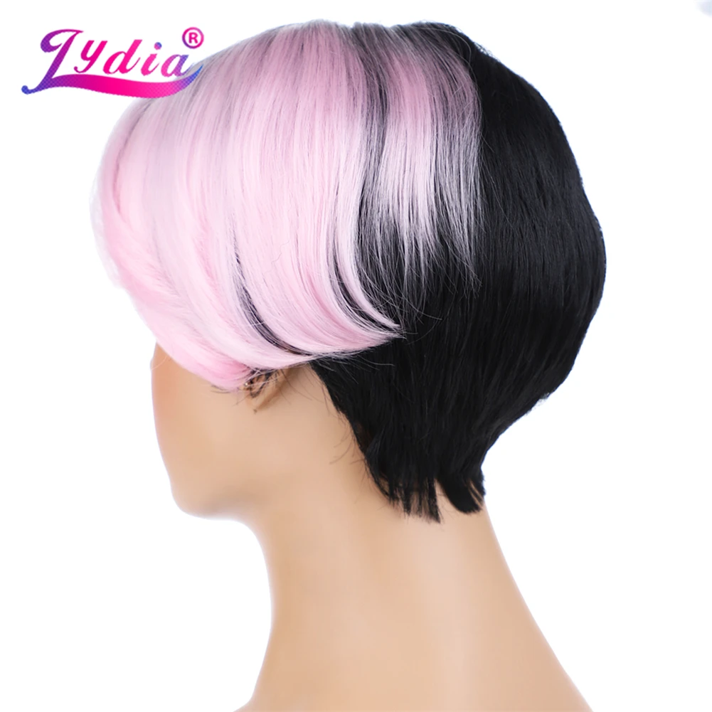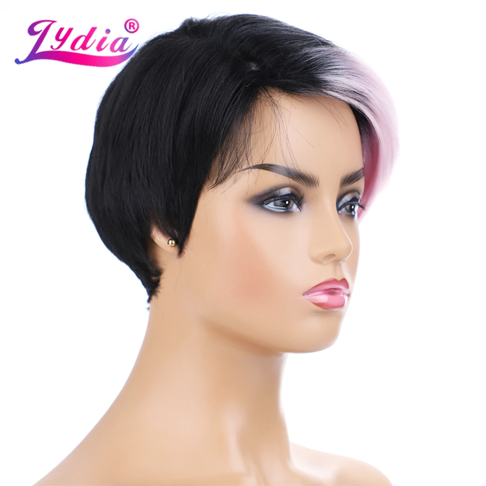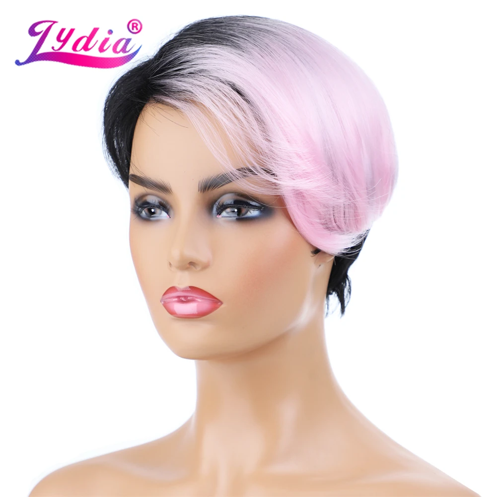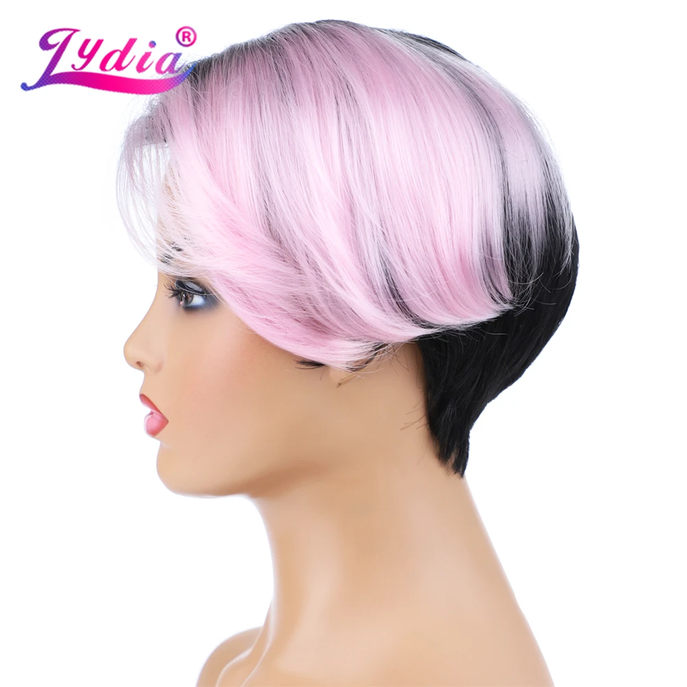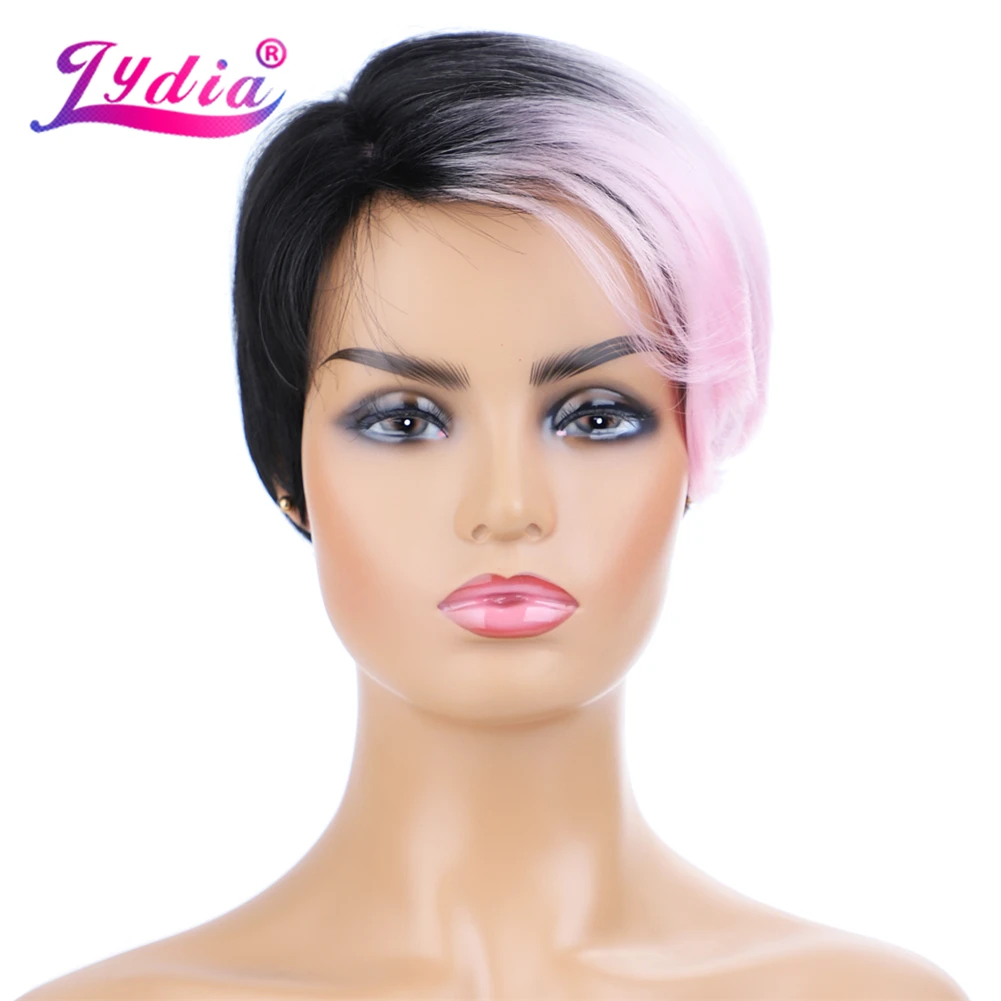 Lydia для женщин короткие прямые синтетические парики 8 дюймов парик естественных разных цветов FT1Bрозовые левосторонние афроамериканские парики