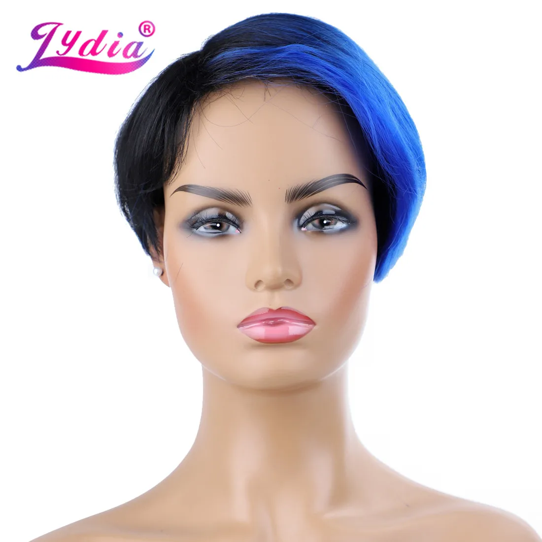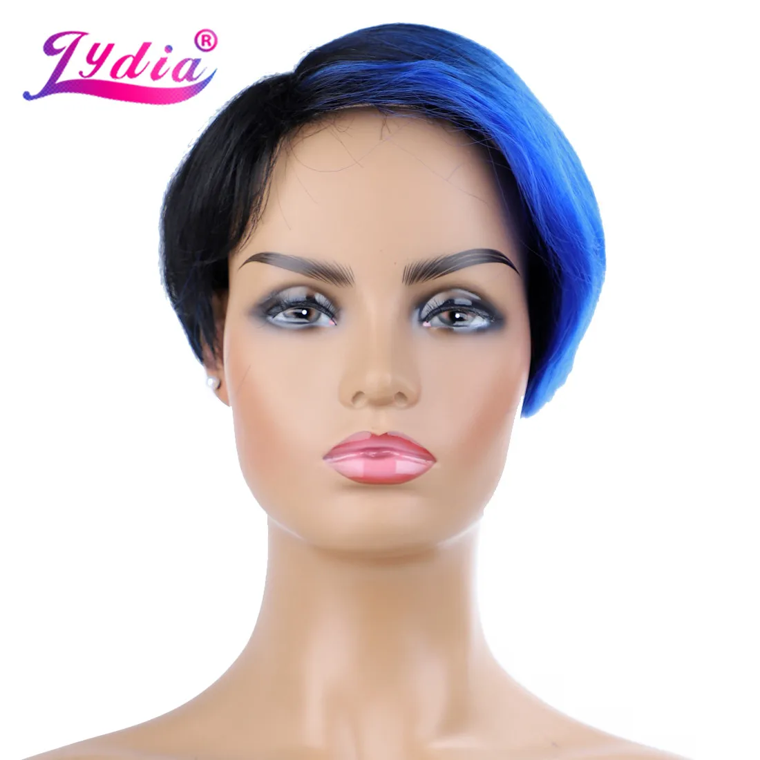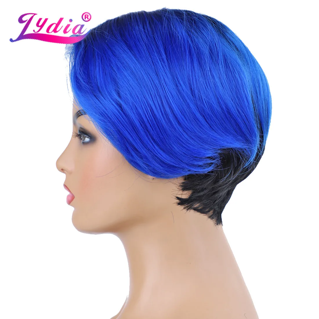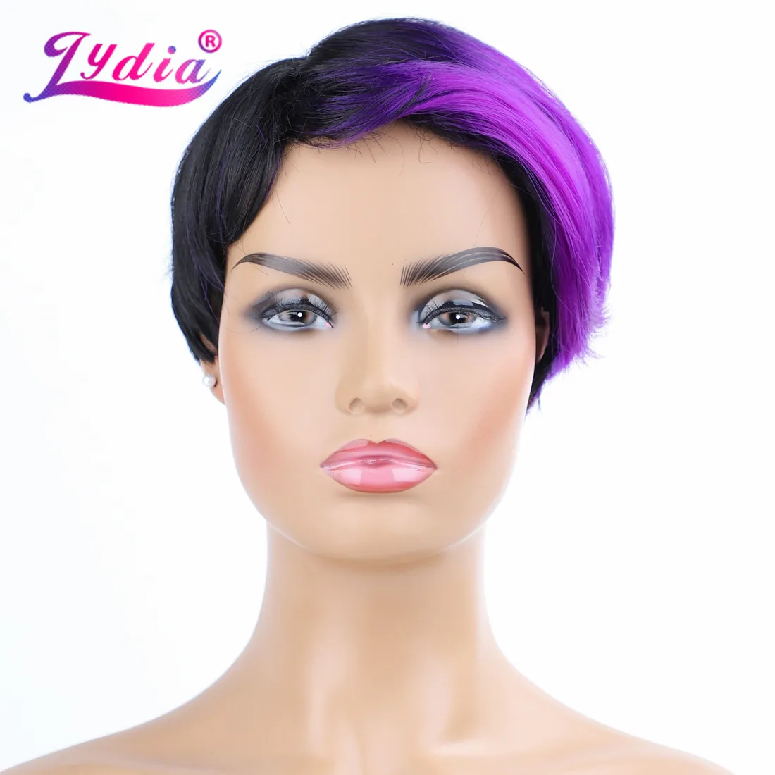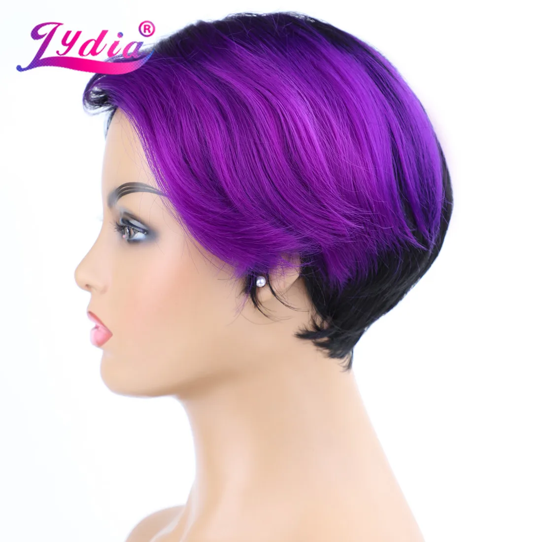 Lydia для женщин короткие прямые синтетические парики 8 дюймов парик естественных разных цветов FT1Bрозовые левосторонние афроамериканские парики