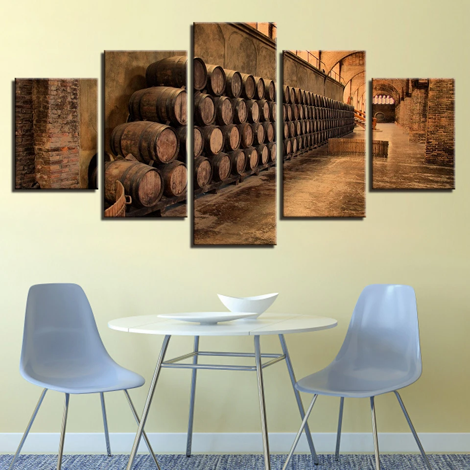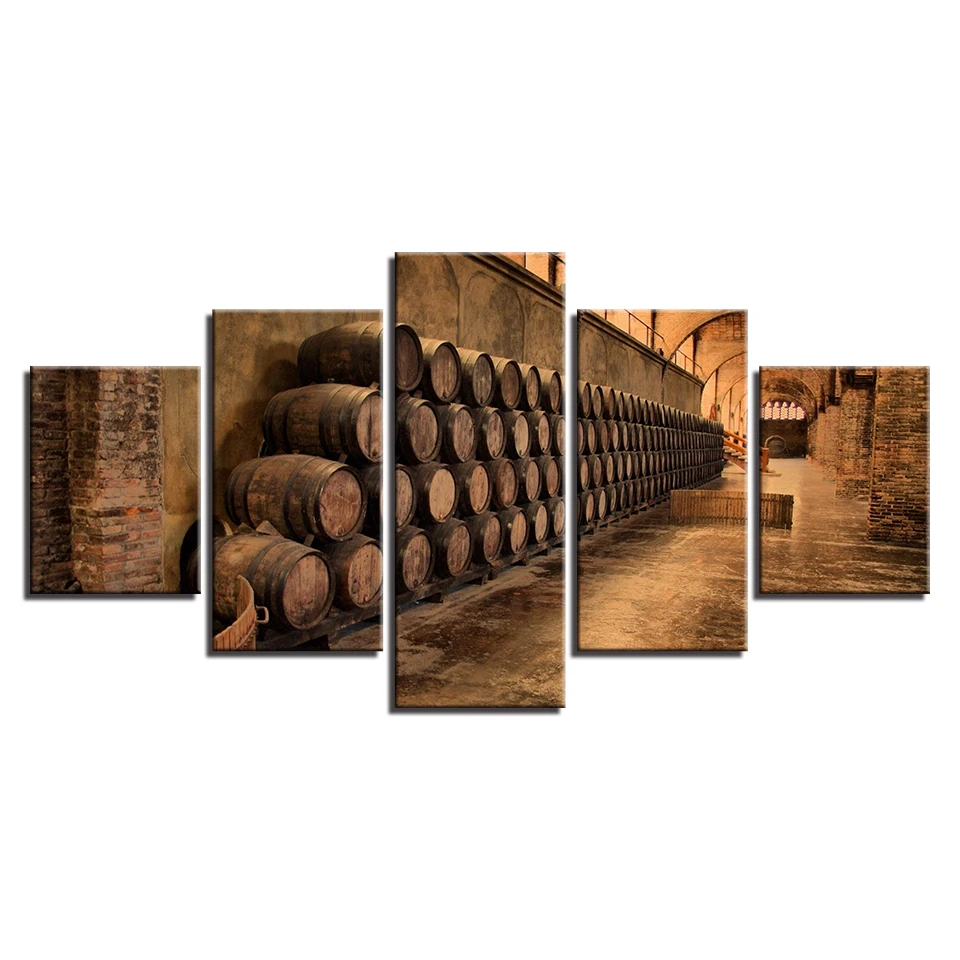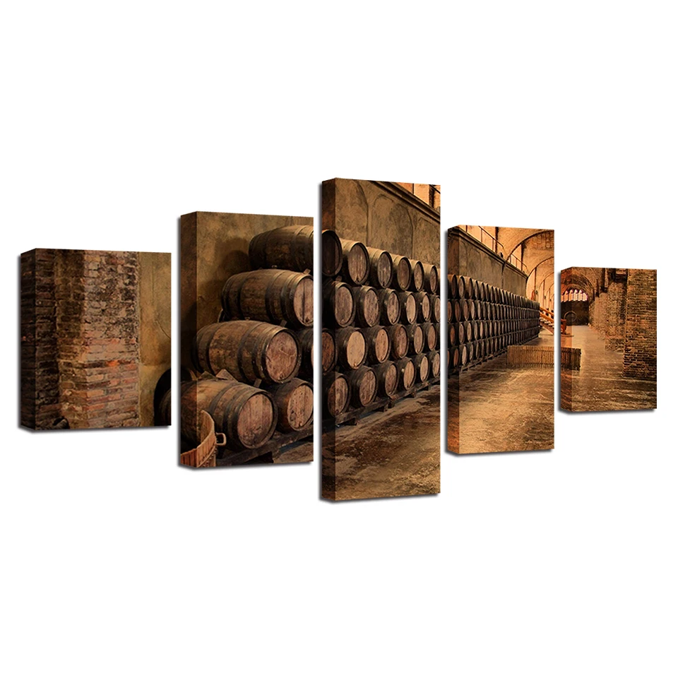 Домашнее украшение для гостиной, современные картины, искусство, 5 панелей, винный бочонок, Шато арт-принт на холсте, плакат Wall, Модульная картина