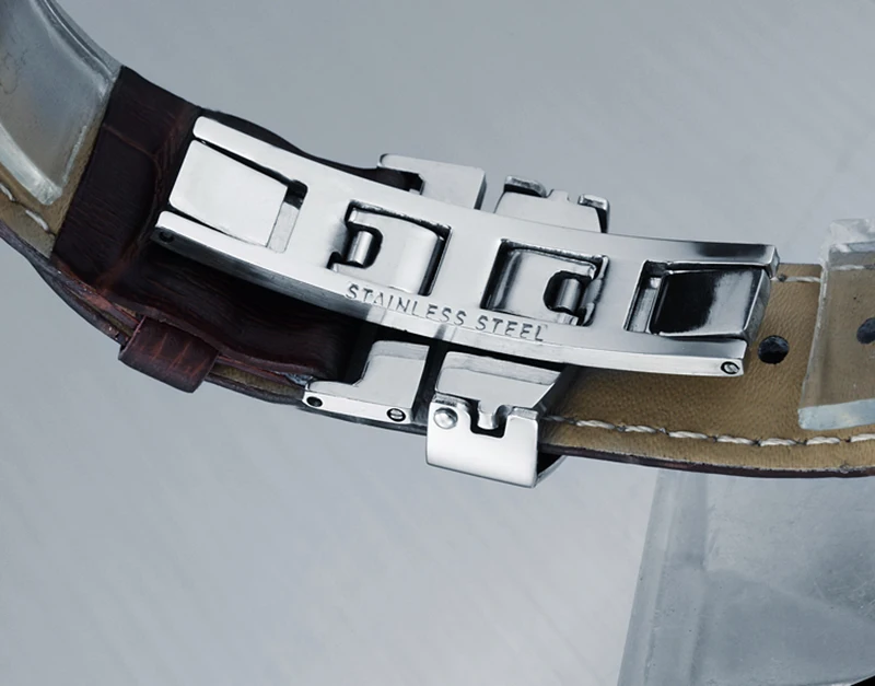 Часы мужские механические водонепроницаемые с календарем и кожаным ремешком