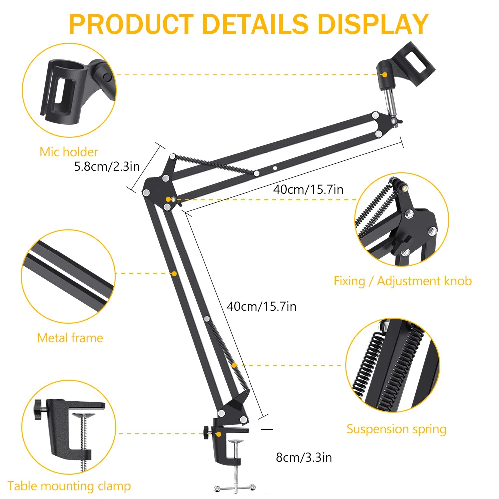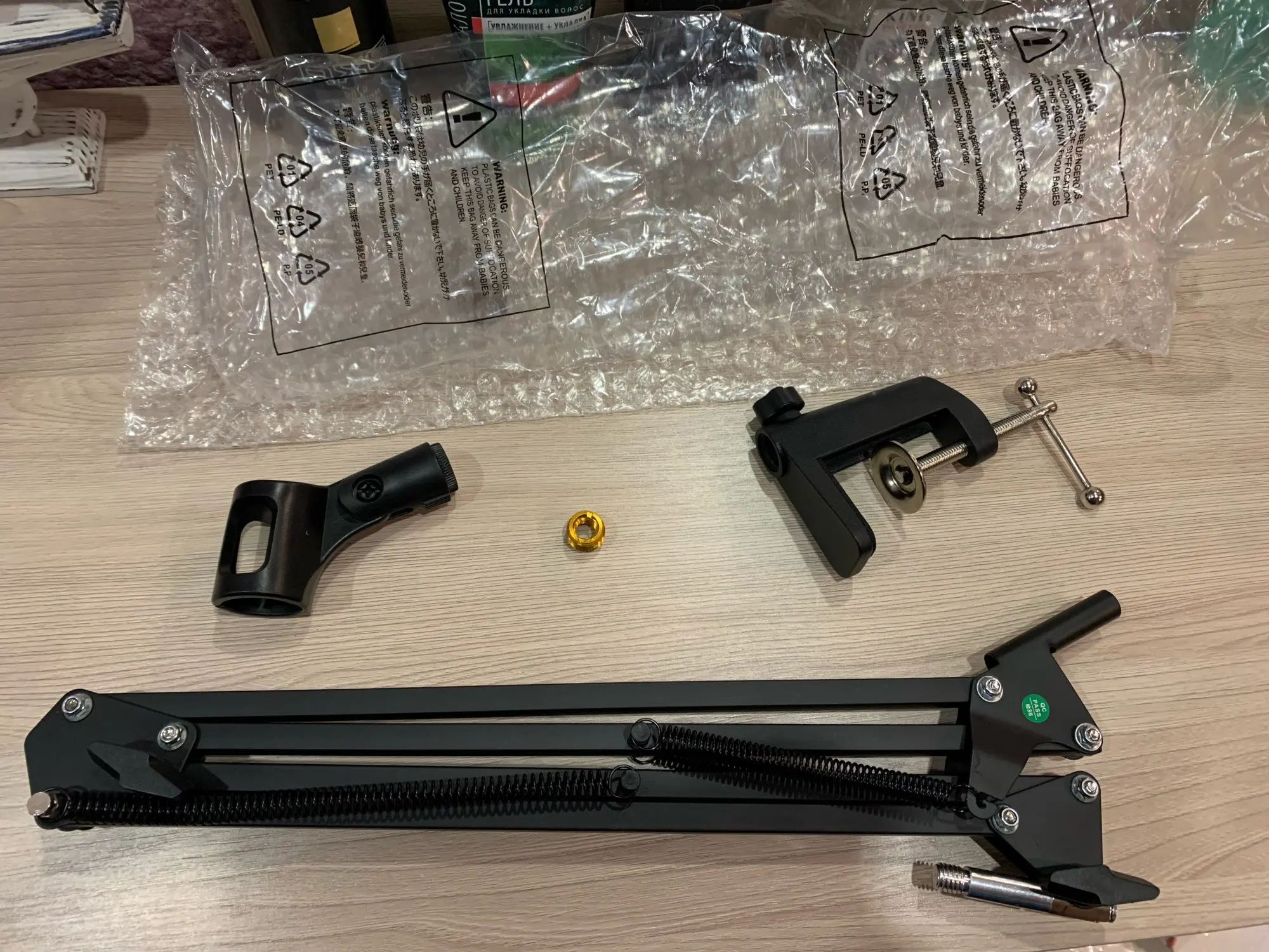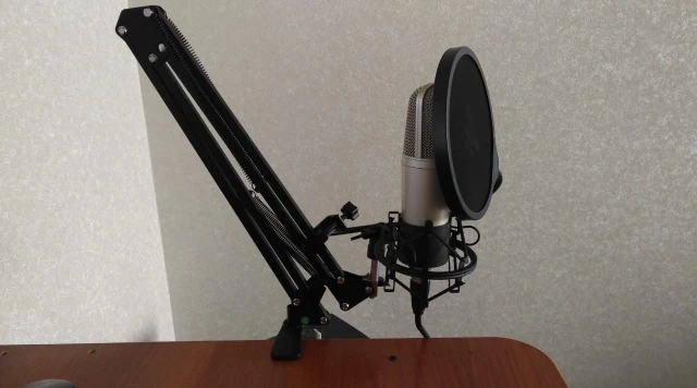 Отличное качество,крепко цепляется к столу. Единственное,микрофон потолще,чем держатель и из-за этого он него не держит,но так все прекрасно.Пришло за 15 дней до Кемеровской области