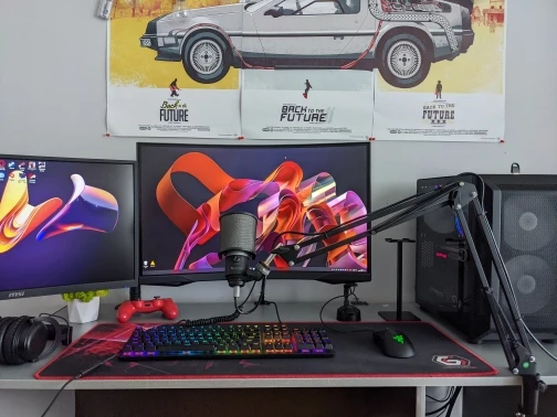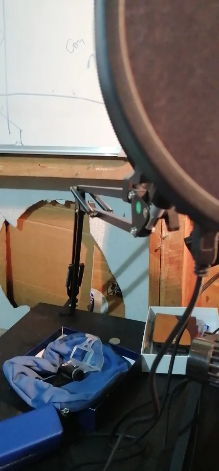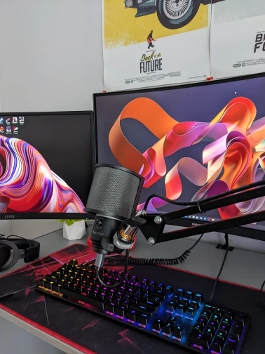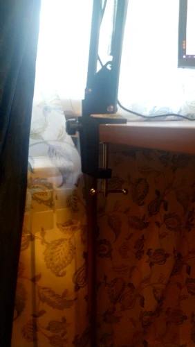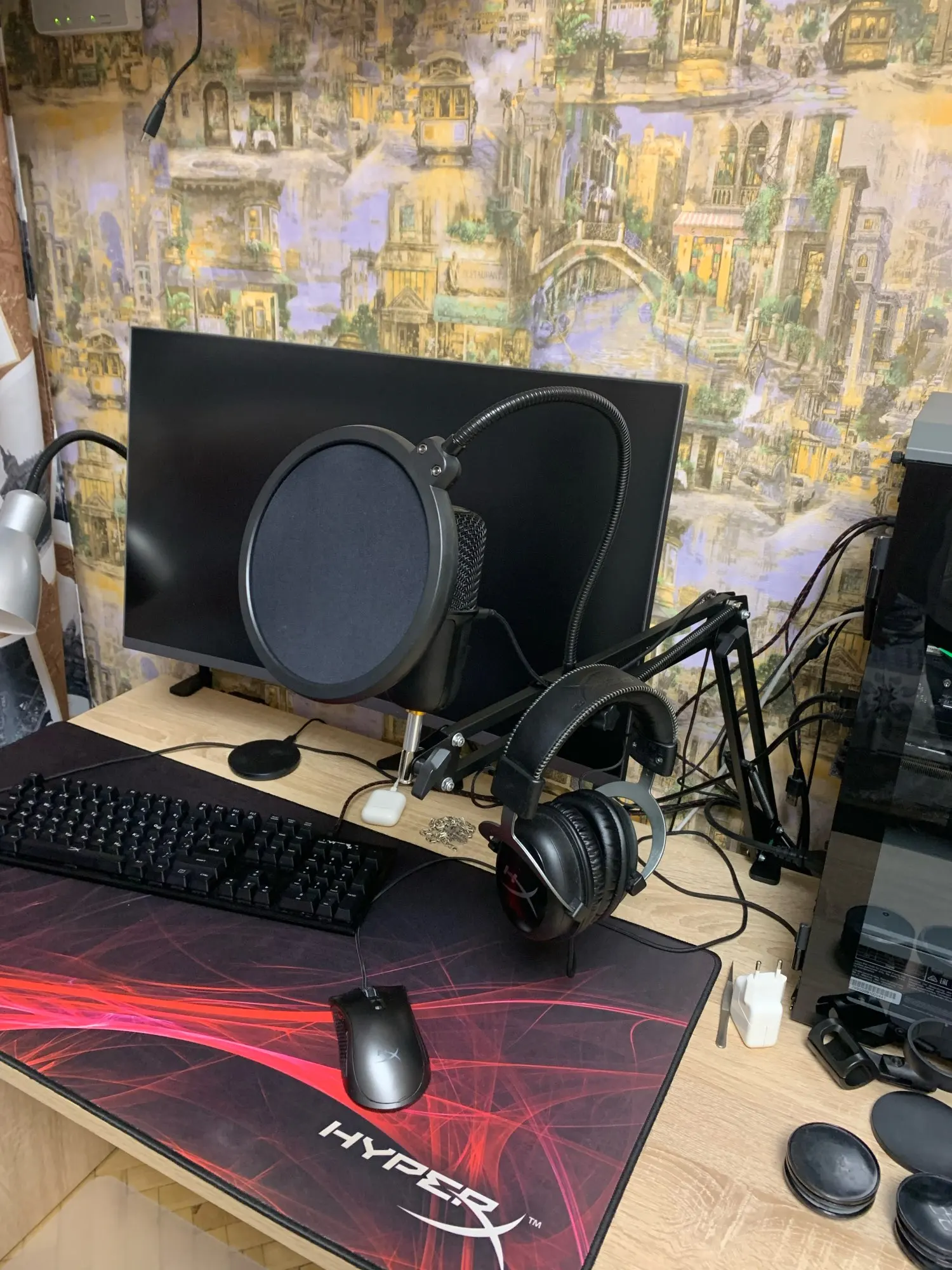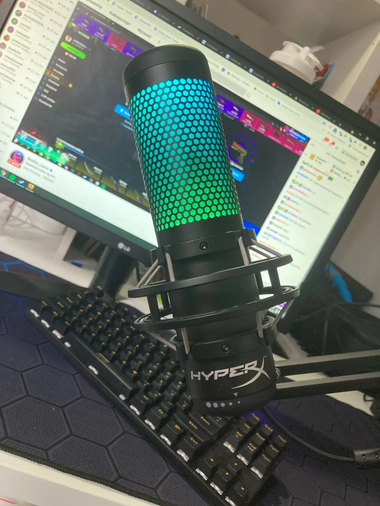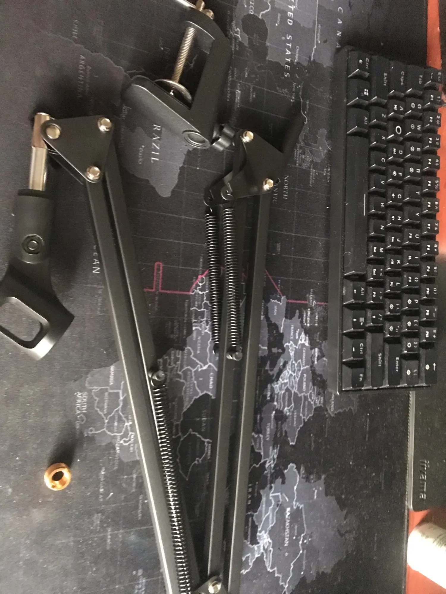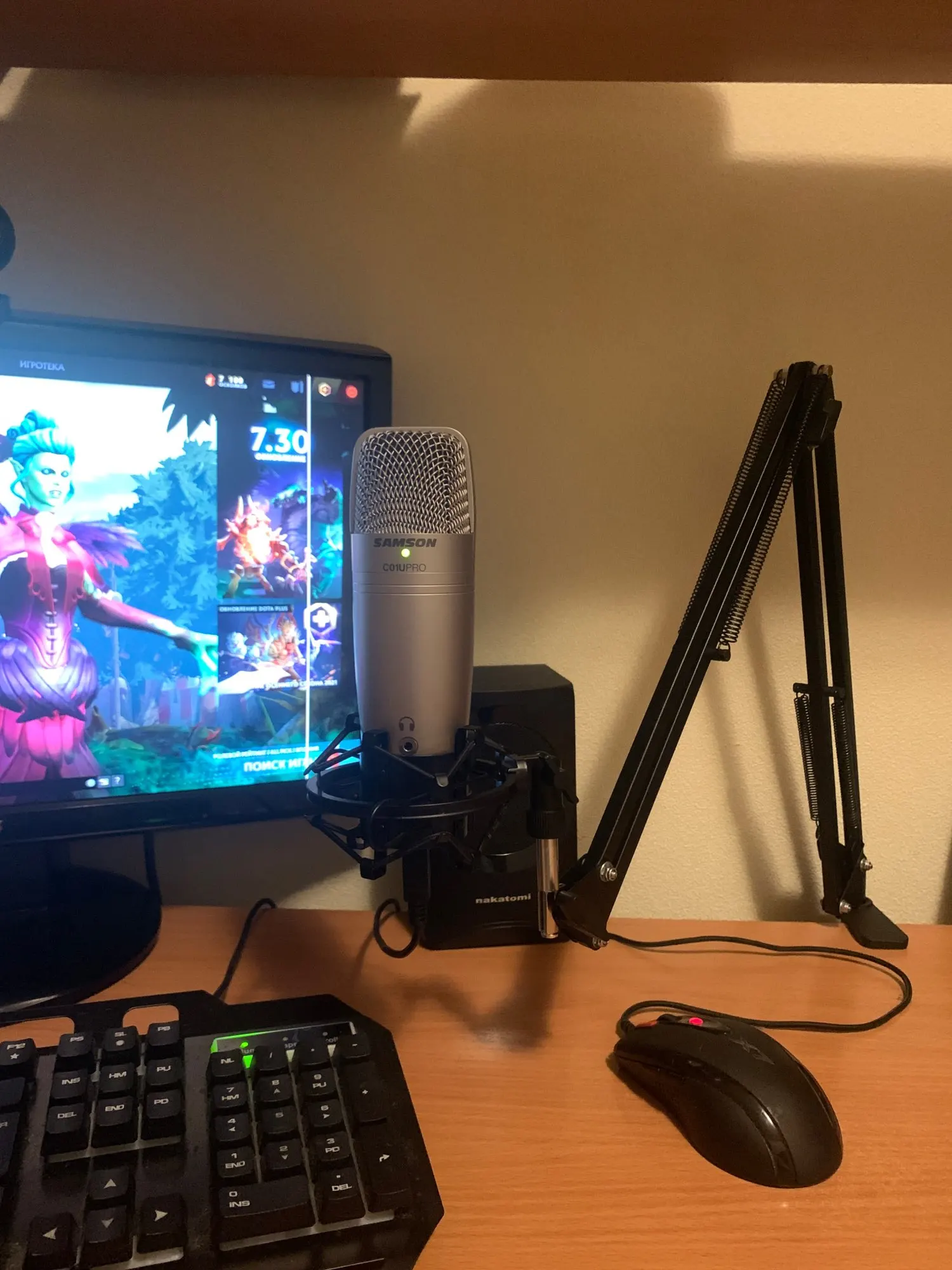 ■ Хороший пантограф. ■Микрофон hyperX quadcast ►Весом 254 г держит хорошо, не падает. Видно на фото. ■Держатель который крепится к столу массивный и не сгибается. ■Раздражительный крепёж который держит сам микрофон, который постоянно если двигать микрофон чуть влево откручивается, из за этого приходиться делать целый круг микрофоном вправо что бы она прикрутилась. Это не сильно критично если она открутилась и микрофон стоит на одном месте он не будет болтаться и т.д пока не решите его убрать.