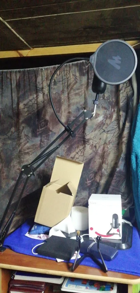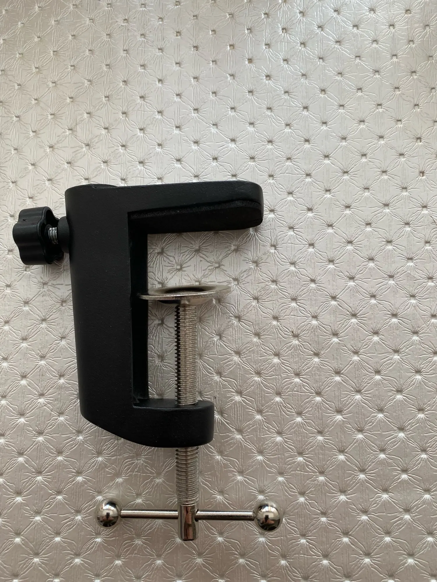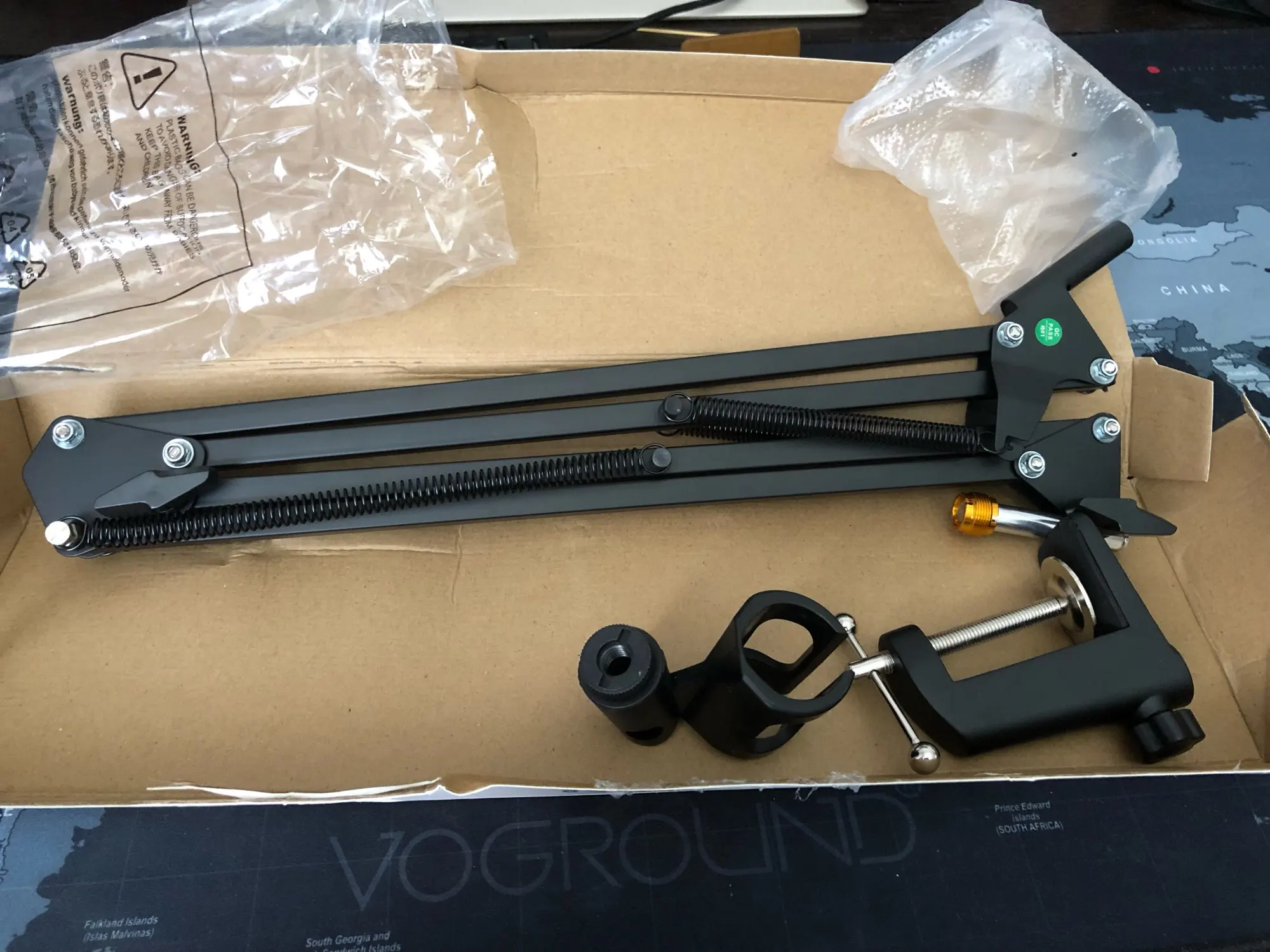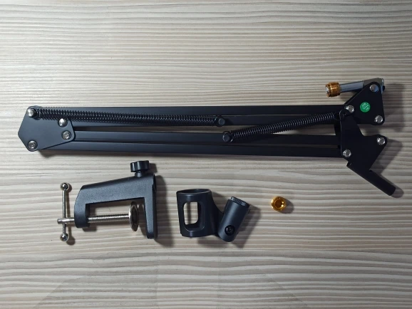 Заказал 02.04.21, получил в г. Днепр, Украина 17.04.21. Микрофон Behringer XM8500 держит устойчиво. Подкрутил только отверткой само крепление микрофона, чтобы вертикально было более устойчиво (это единственный зажим на болте, другие с регуляторами). Все отлично, только разве что в струбцине "нога" немного ходит вверх и вниз. Крепление на ней лучше сильно не затягивать, т.к. "ногу" царапает при вращении влево-вправо. Не критично, просто имейте в виду. Детали в Телеграм: AcquisitionsOfMine An order was made on 02.04.21, received on 17.04.21, Dnipro, Ukraine. It my Behringer XM8500 quite fine. I only used a screwdriver to tighten a screw on a mic holder itself (so it isn't wobbly vertically). Btw, this is the only screw in the whole boom arm, all the rest of fastenings have special knobs to tighten and untighten everything. Everything is fine but one thing: the foundation of the boom arm in the clamp is a bit wobbly vertically, it's ok though. Details are on Telegram: AcquisitionsOfMine