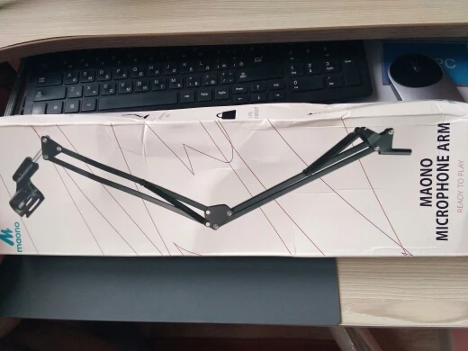 Ну, в общем, отличный пантограф и весьма качественный поп-фильтр. Смущают некоторые пластиковые элементы "руки", но держится, регулируется и вращается всё надёжно. Вся продукция Maono, в принципе, хороша, до этого покупал мик AU-PM320, как раз к нему и докупал держатель, качество порадовало микрофона. Посылка была доставлена мене, чем за 2 недели до Московской области. Найс!)