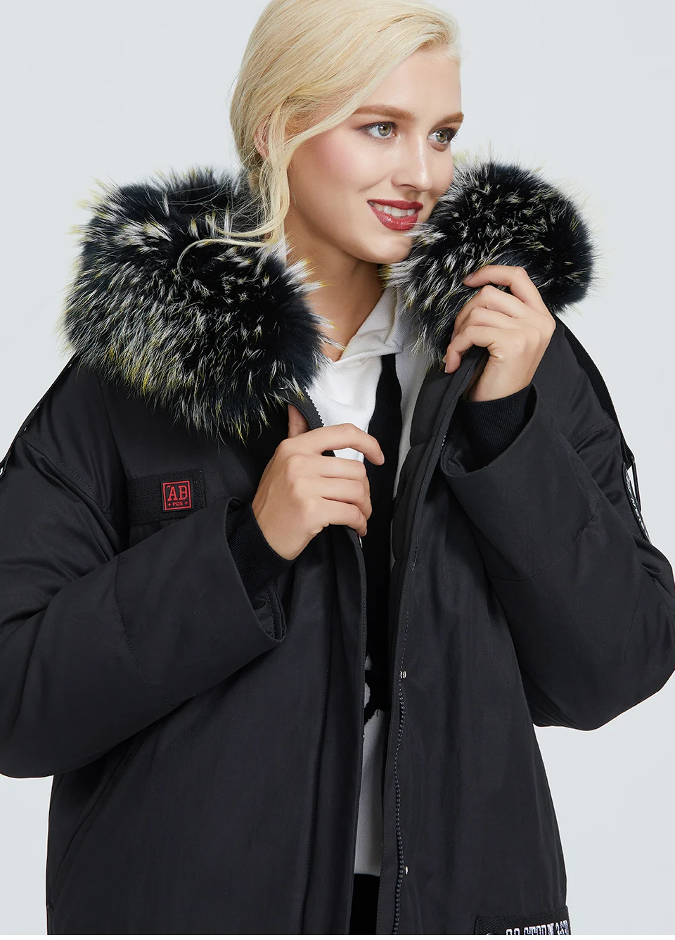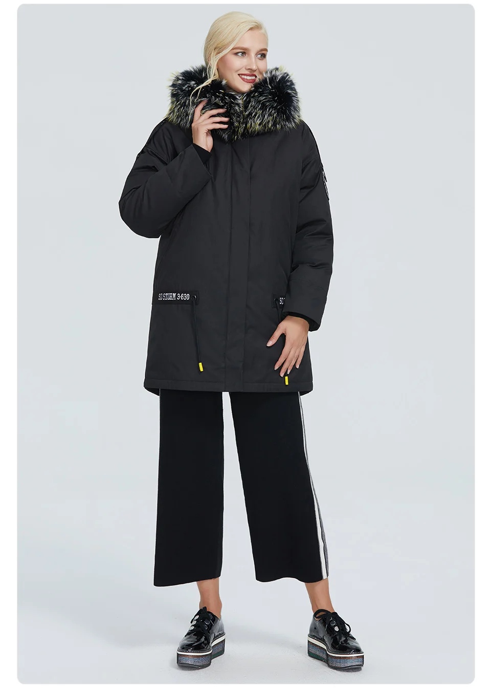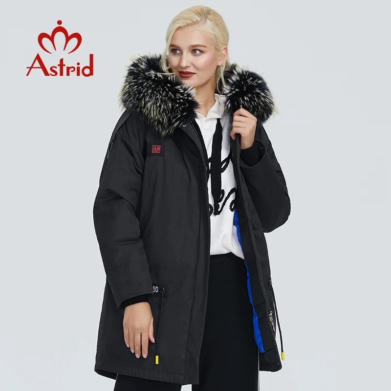 2021 Astrid зимняя куртка женская толстая хлопчатобумажная одежда; Теплая обувь для отдыха черного цвета Женская парка с большим меховым воротником дизайн ZR-3030