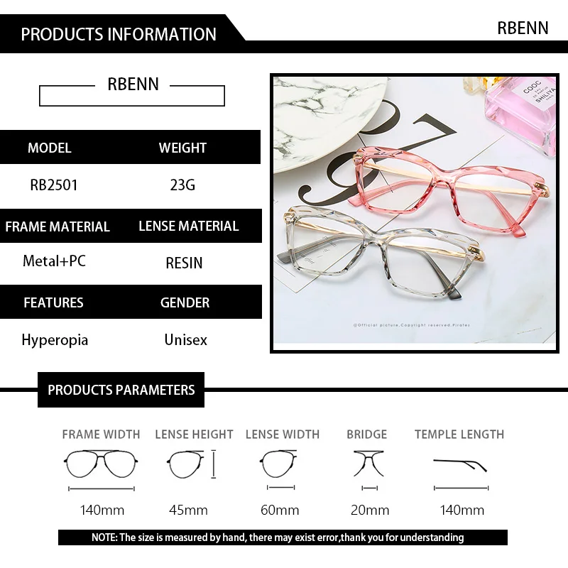 Очки RBENN для чтения кошачий глаз женские, роскошные очки для чтения при пресбиопии в прозрачной оправе, 0,75, 1,25, 1,75, 2,75, 5,0