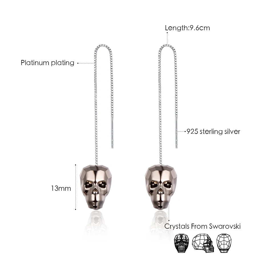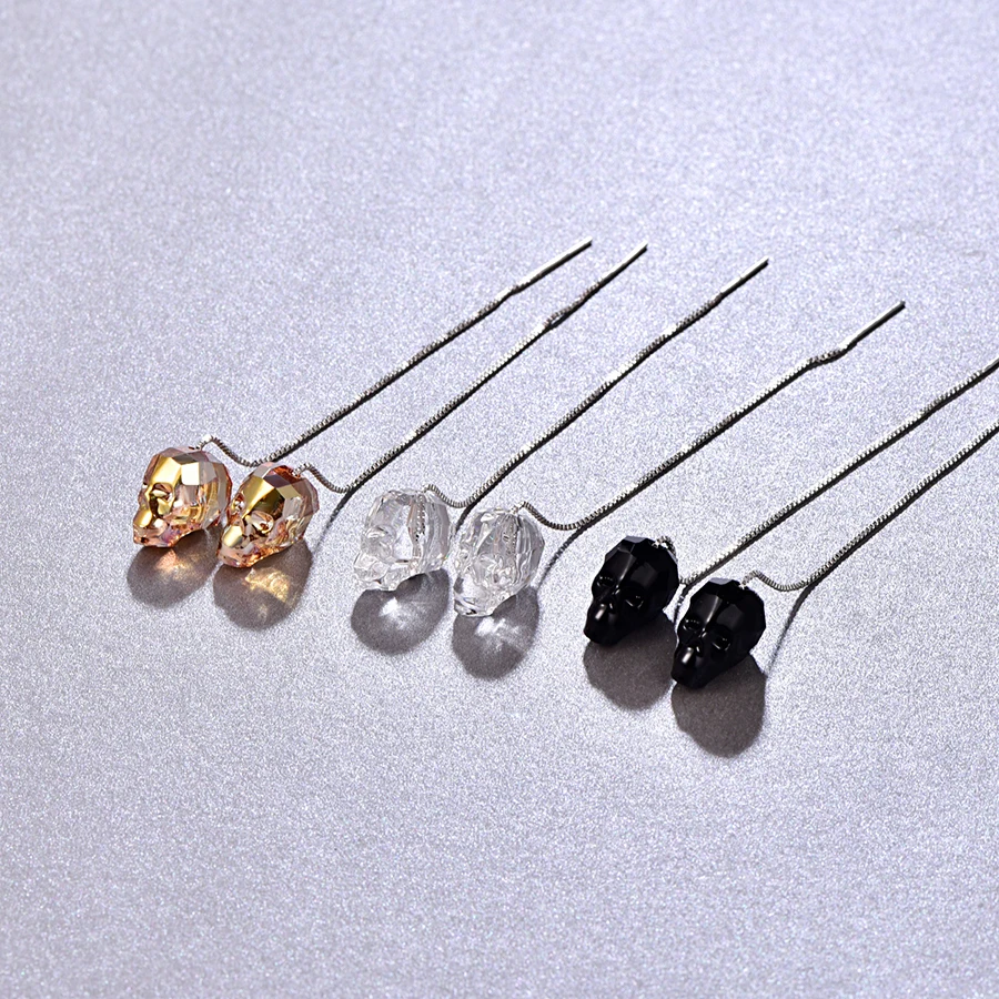 Женские серьги-подвески с кристаллами Сваровски, висячие ювелирные украшения для пирсинга в виде черепа, бижутерия для вечерние