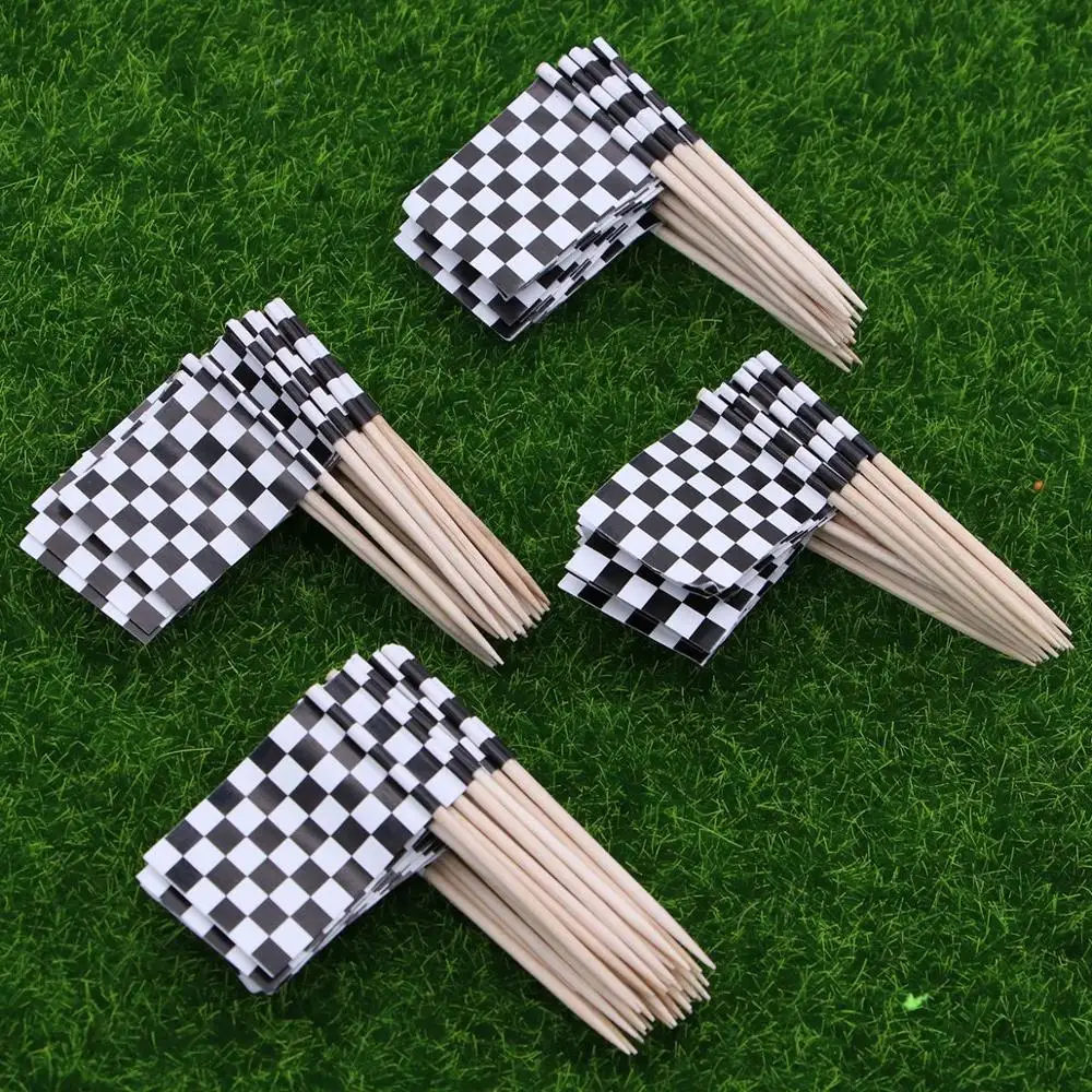 2448 шт. гонки флаг зубочистки клетчатый флаг палочки печенье зубочистки Фруктовые палочки для коктейльной вечерние НКИ-черно-белые