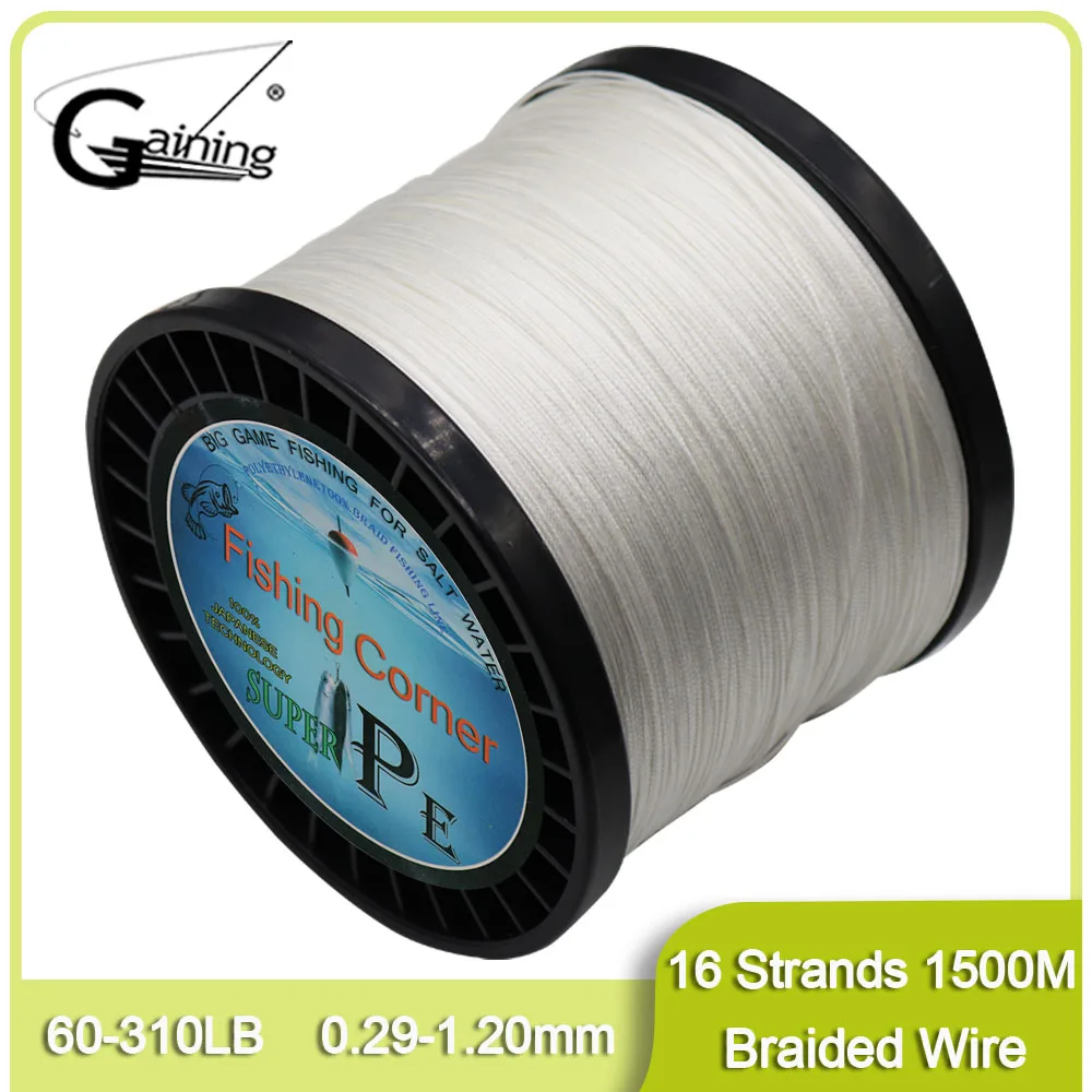 Мощность 16 нитей 1500 м супер сильная плетеная рыболовная проволока 60LB-310LB 0,29 мм-1,20 мм мультифиламентная PE леска для осетровой рыбалки