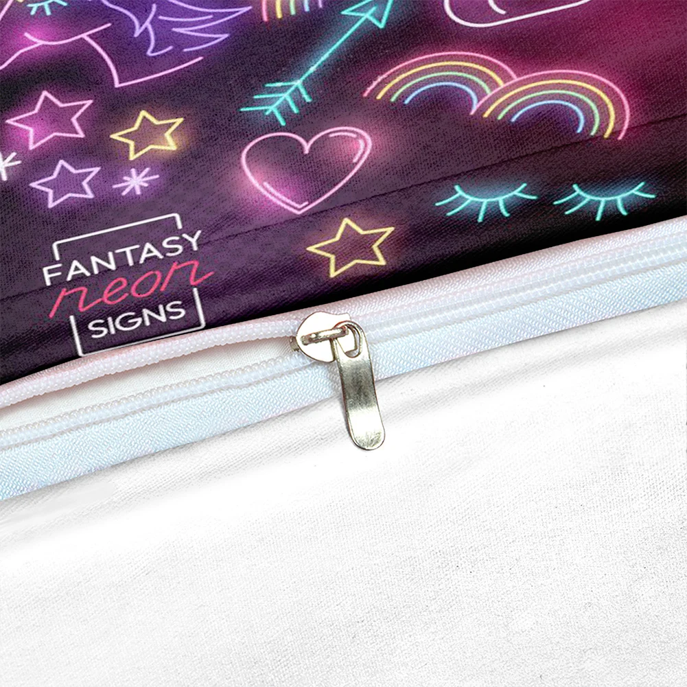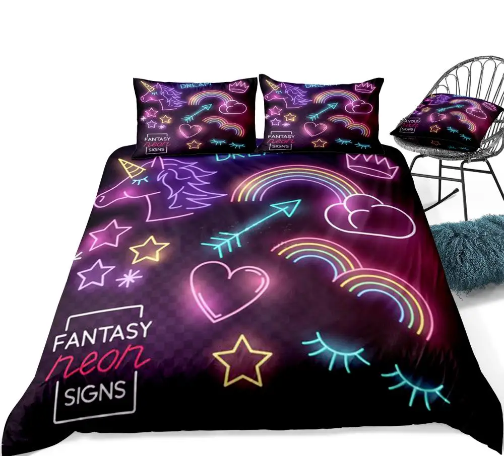 Розовое постельное белье с изображением единорога, Набор радужных покрытий, неоновый светильник, постельное белье для детей, 3 шт., светящийся единорог, домашний текстиль, фиолетовый, синий, ресницы