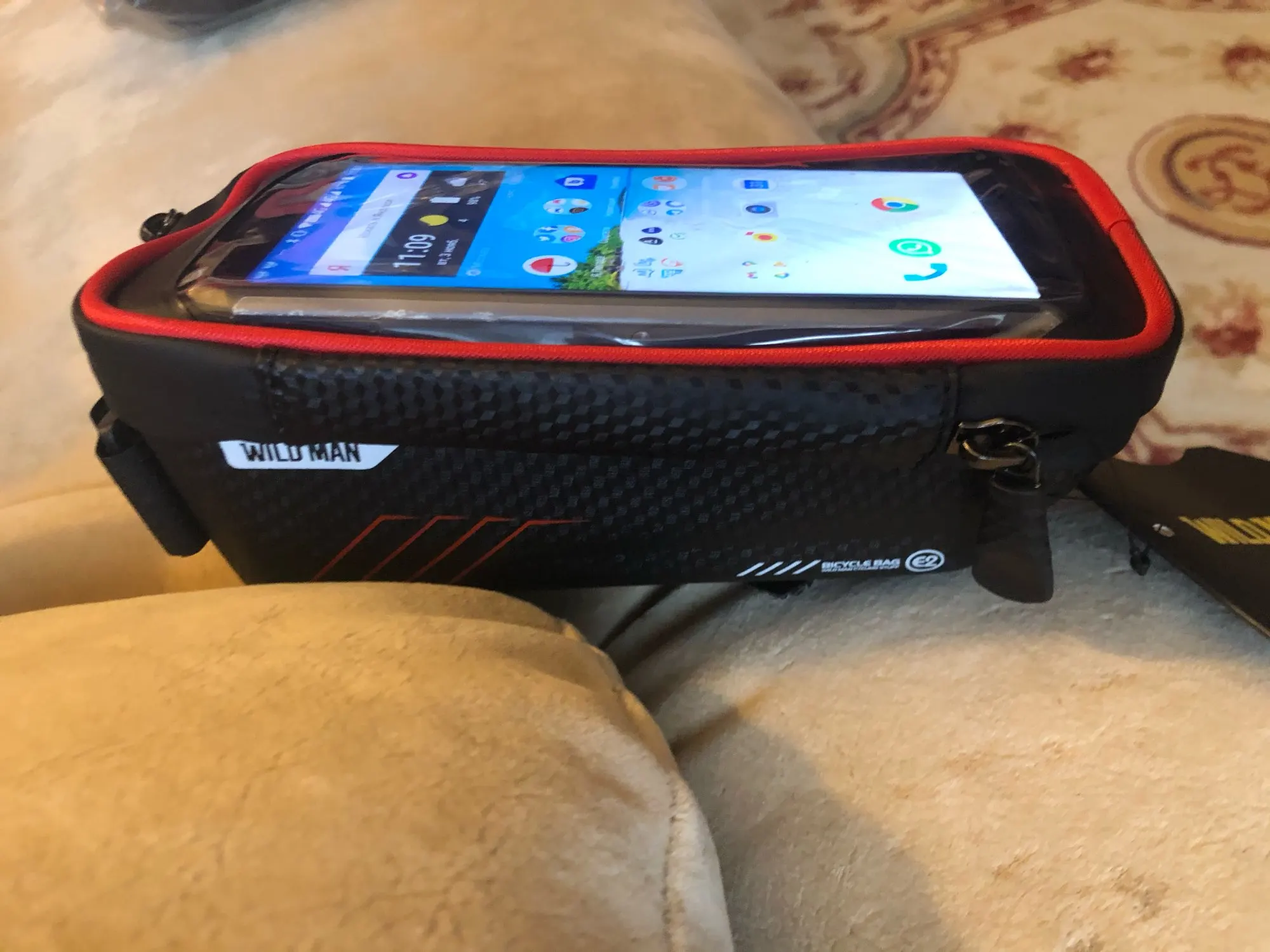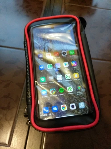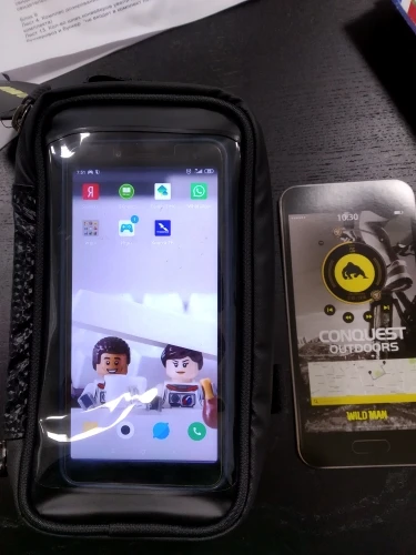 Стильная и полезная штука. Упаковано сверх хорошо, за что отдельное спасибо. Ничего не помялось, если бы даже захотели. Замки на сумочке работают отлично, много места для всякой мелочевки типа ключи, бумажника с документами, спичек, и т. д. Телефон держится прочно, через пленку работает, есть прорезь для проводов наушников. Воду держит хорошо, не промокает. Крепления к велику прочные. В общем полезная штуковина. Я доволен покупкой.