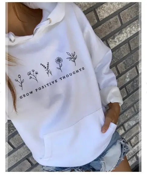 Пуловер с графическим принтом расти позитивные мысли, Свитшот хлопковый с цветочным принтом, с забавными карманами, модный джемпер в подарок