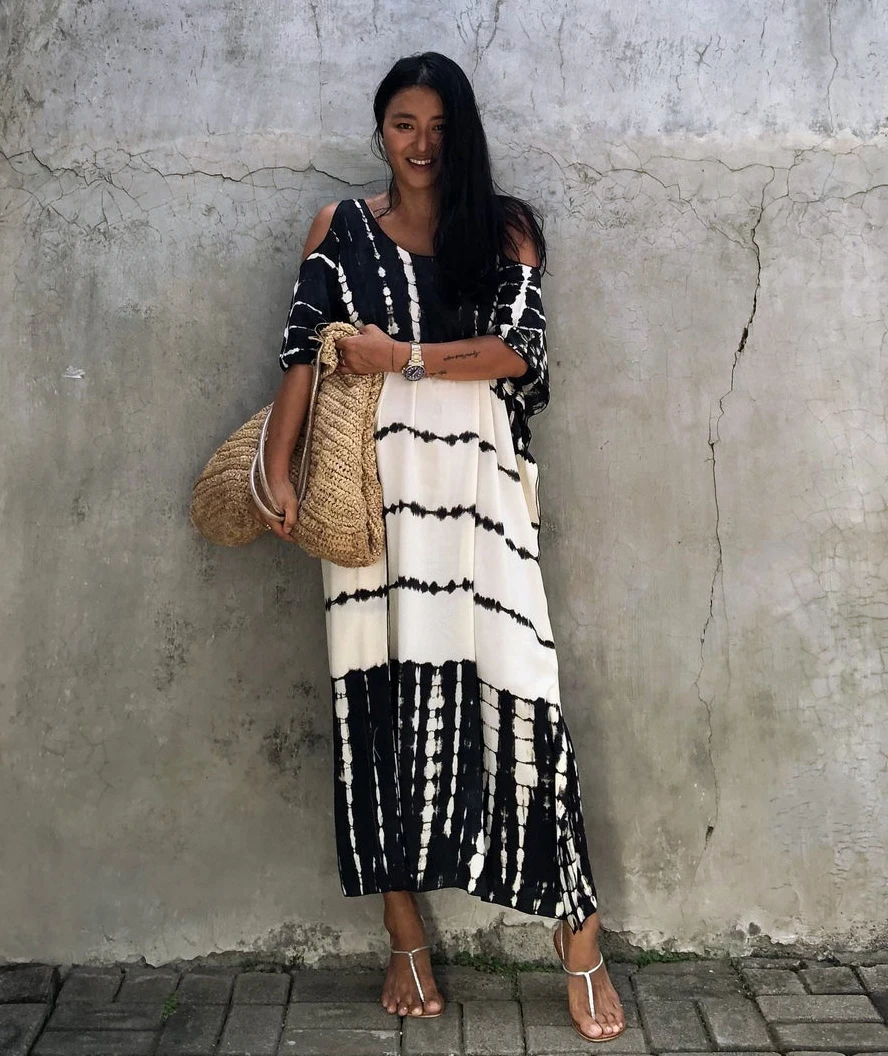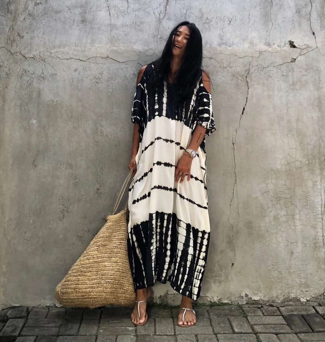 llegó mucho antes de lo esperado, bien empacado es muy linda la tela es algo trasparente pero perfecta para usar sobre el traje de baño, es bastante amplia y queda muy suelta pero está muy bien en general, tal como en la foto