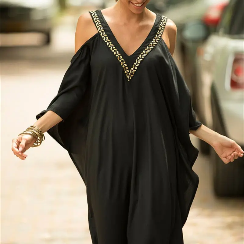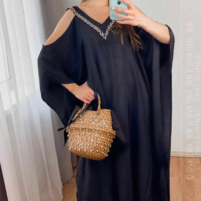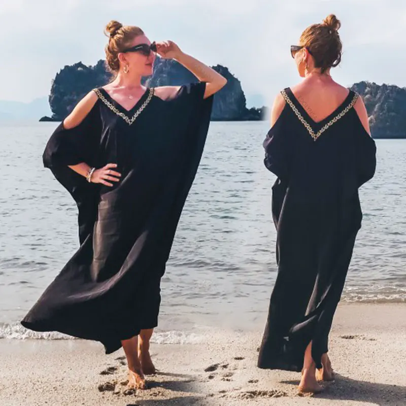 Элегантный черный кафтан пляжная туника Пляжная накидка Saida de купальный костюм Praia женское бикини накидка парео саронг пляжная одежда Q943