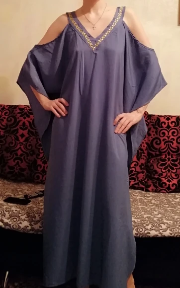 Всё как и ожидала, отличное платье - туника! В самый раз на лето на море, когда нужно и ноги прикрыть, и длинное, но не жарко, и красиво! Когда будут фото, дополню отзыв! Самое главное, что не синтетика!!!