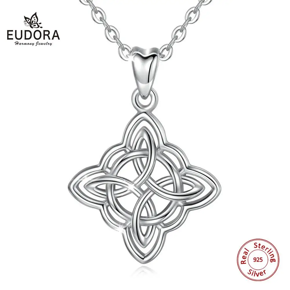 Женское ожерелье с подвеской Eudora, серебряное ожерелье в подарочной коробке с подвеской в виде ирландского кельтского узла на удачу, CYD200