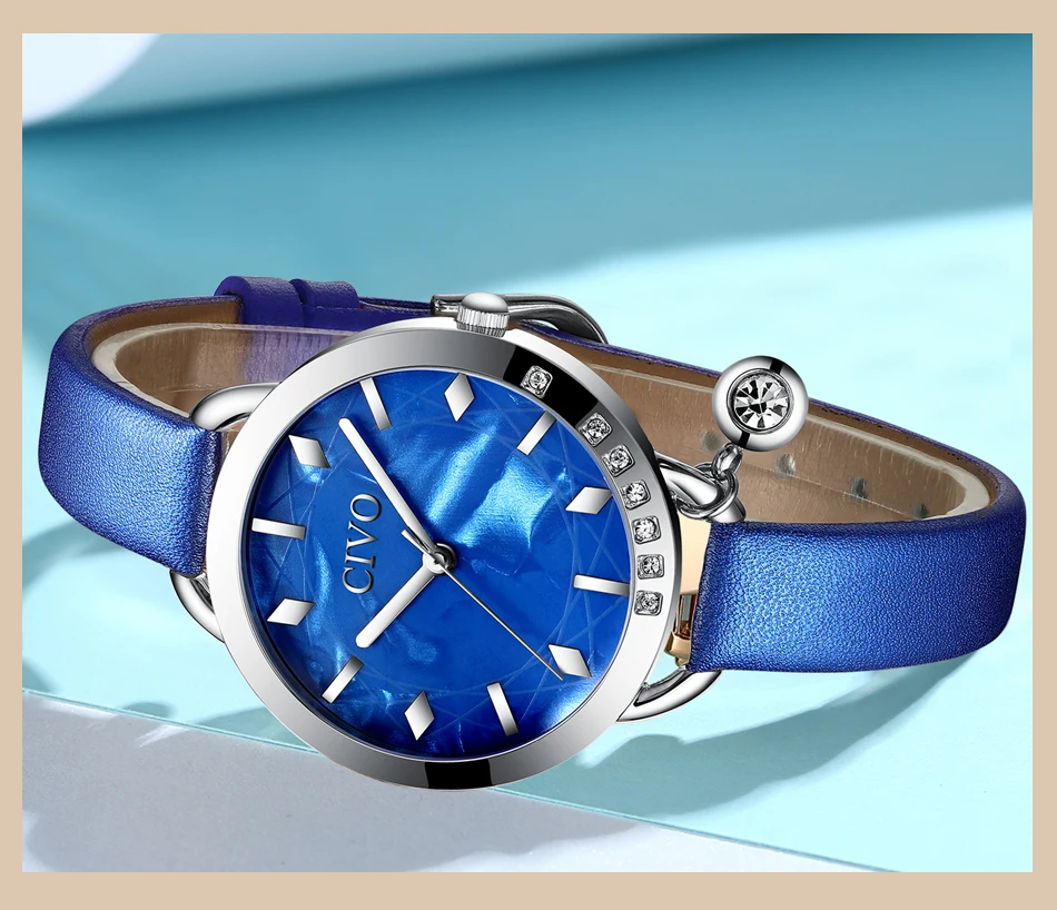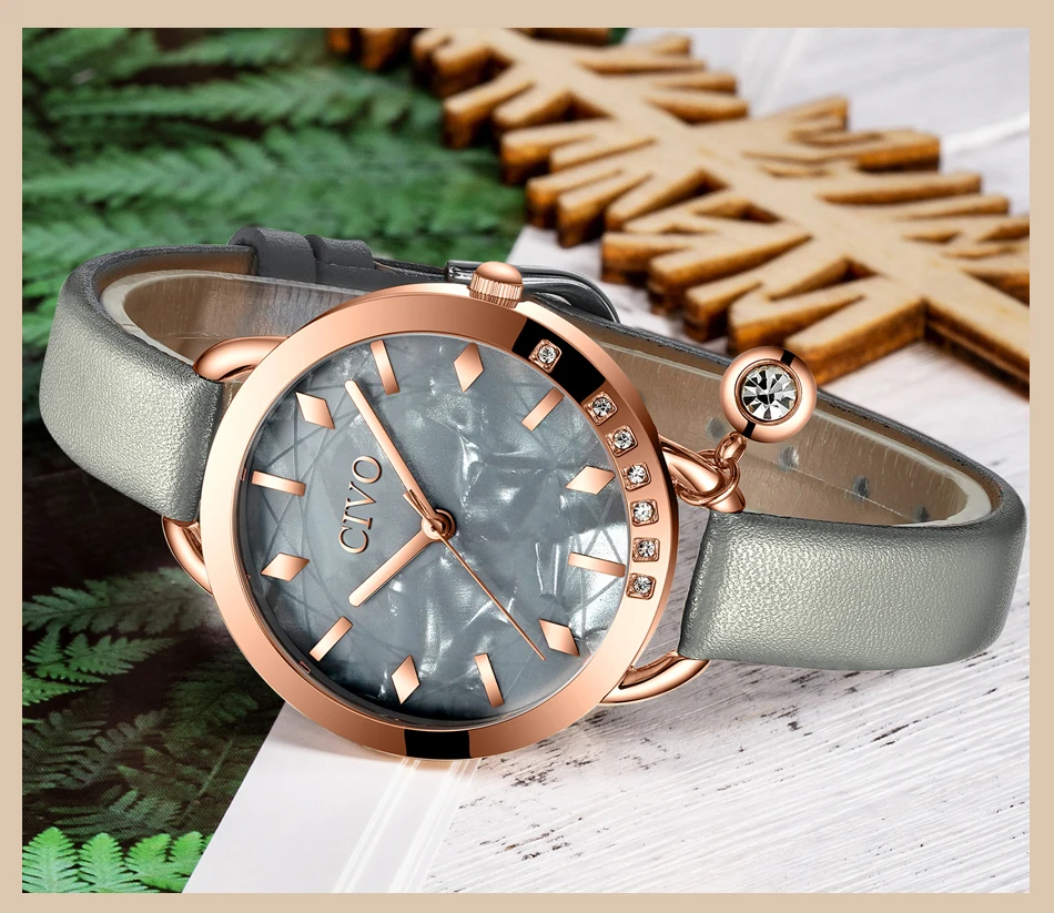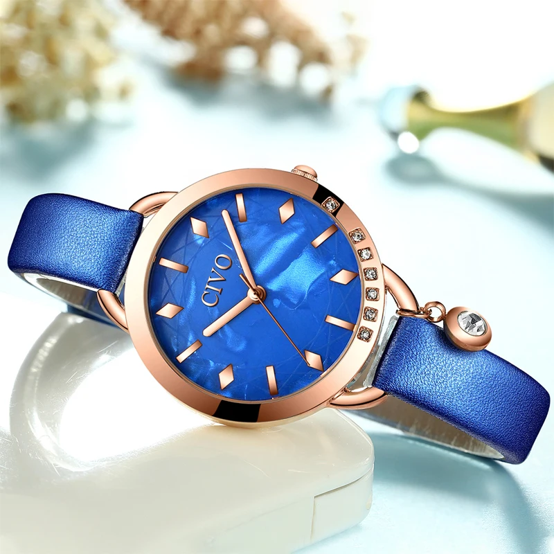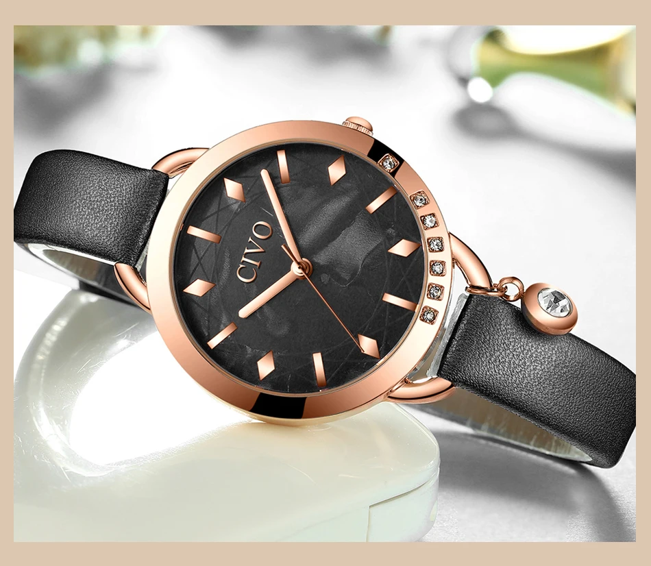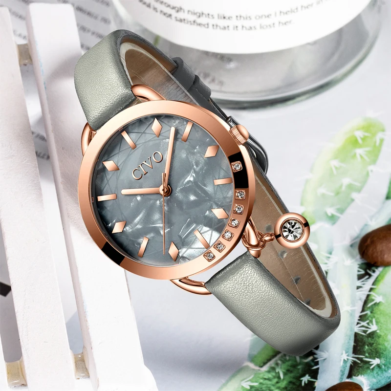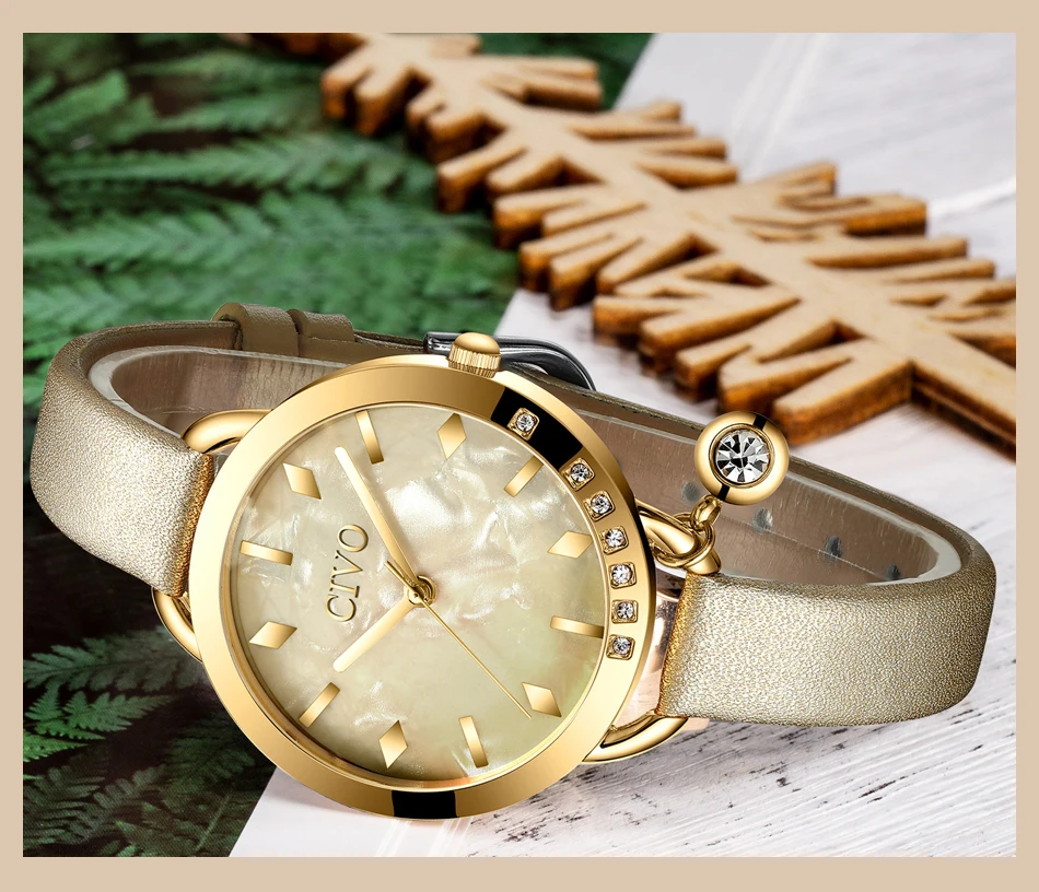 Часы женские с кожаным ремешком, водонепроницаемые, с кристаллами, 2021
