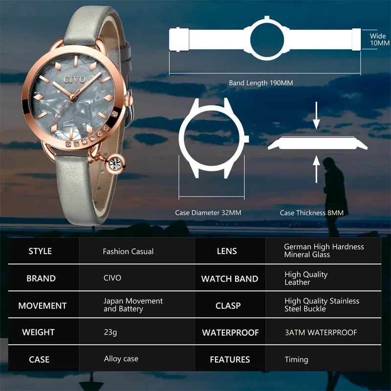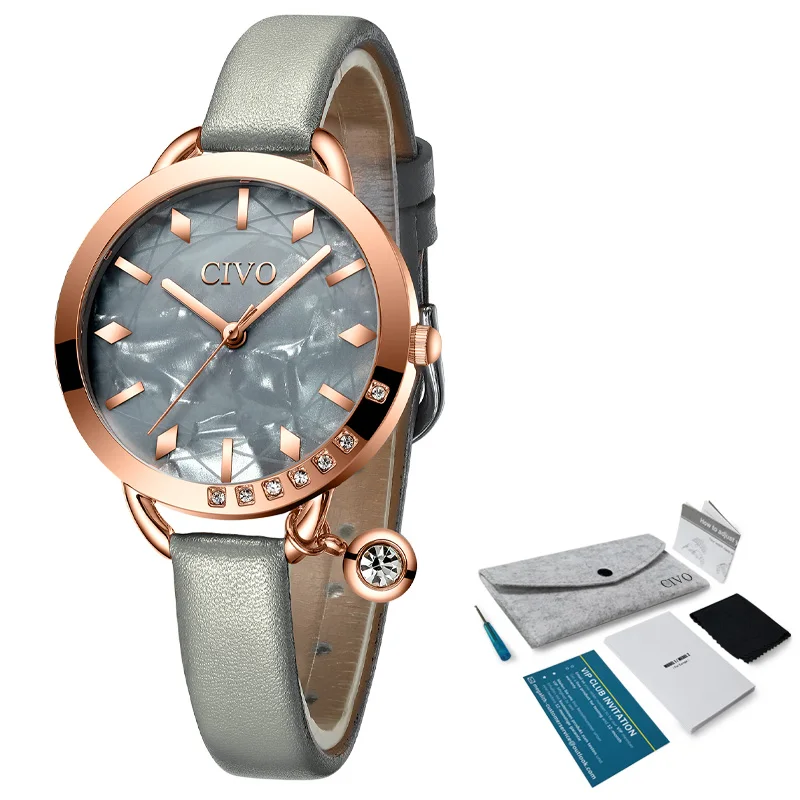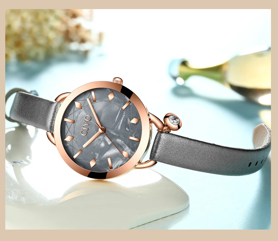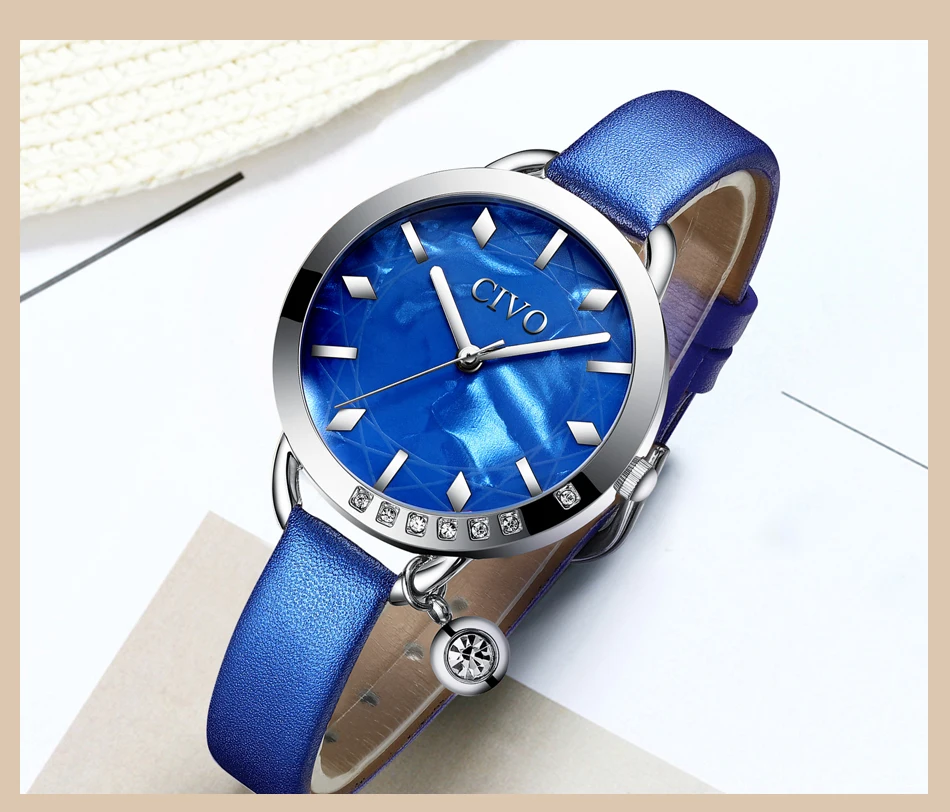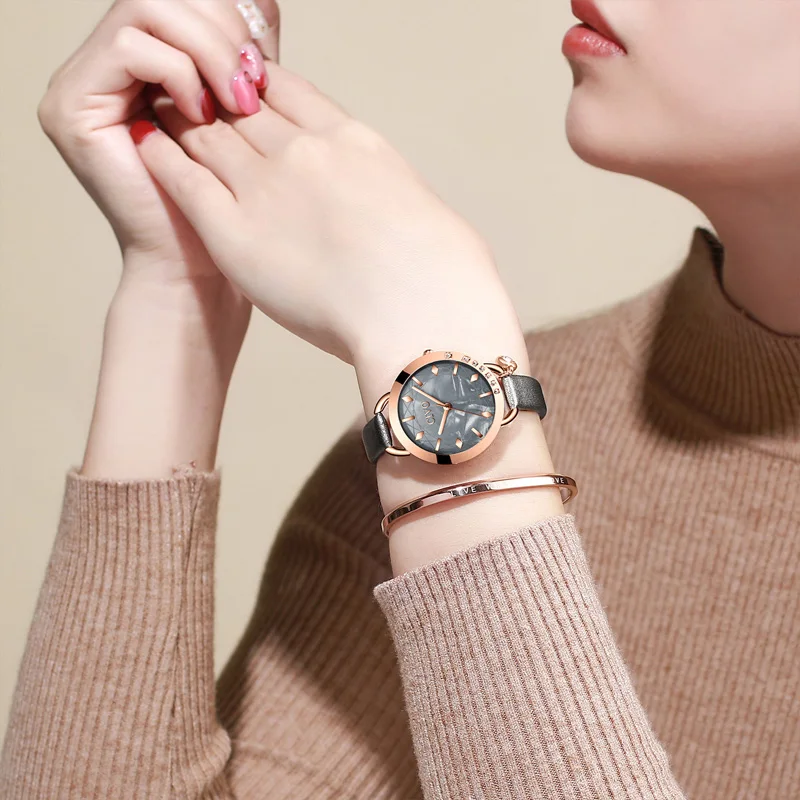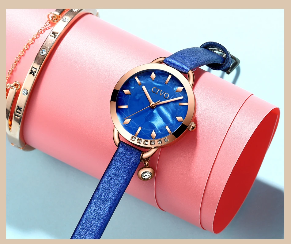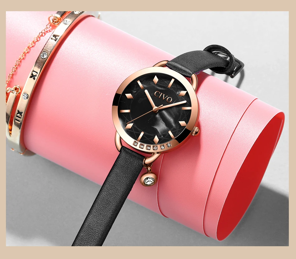 Часы женские с кожаным ремешком, водонепроницаемые, с кристаллами, 2021