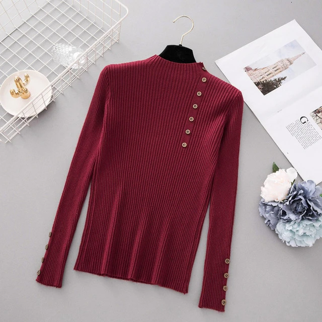 Осенне-зимний свитер женский свитер с высоким, плотно облегающим шею воротником для женщин 2019 Кнопка Женский вязаный кашемировый пуловер свитер Pull Femme джемпер