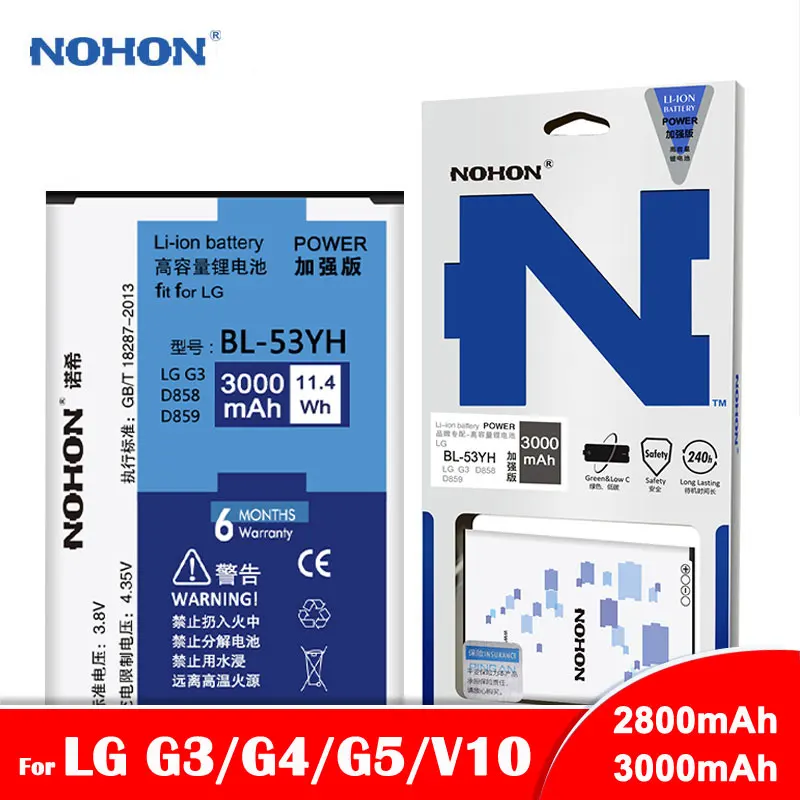 Оригинальный NOHON Батарея для LG V10 P880 G3 G4 G5 BL-45B1F BL-53Q...