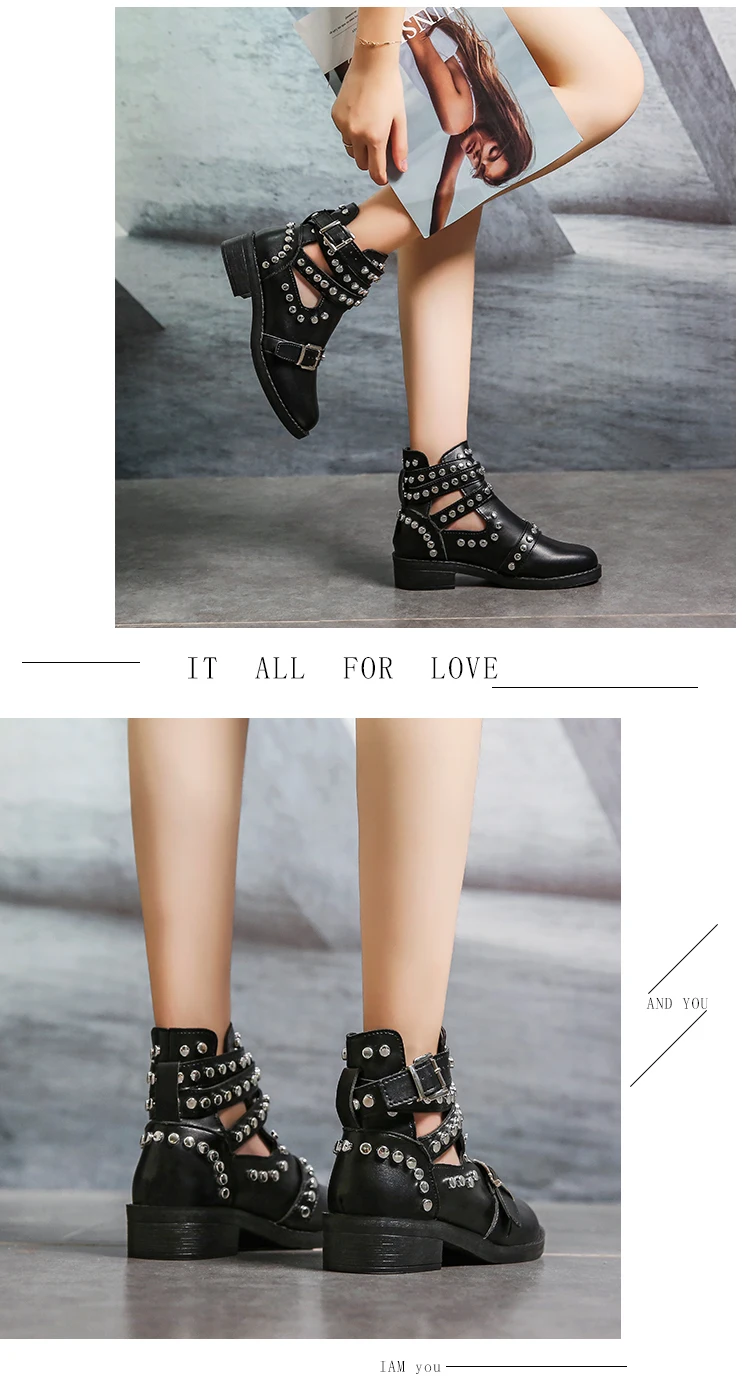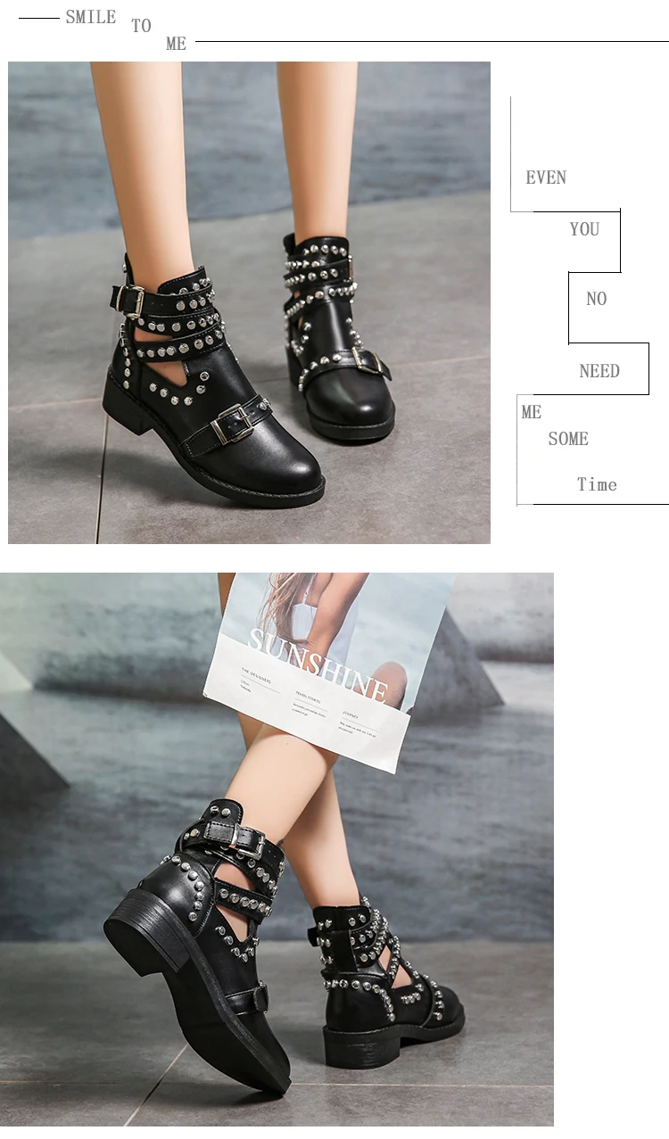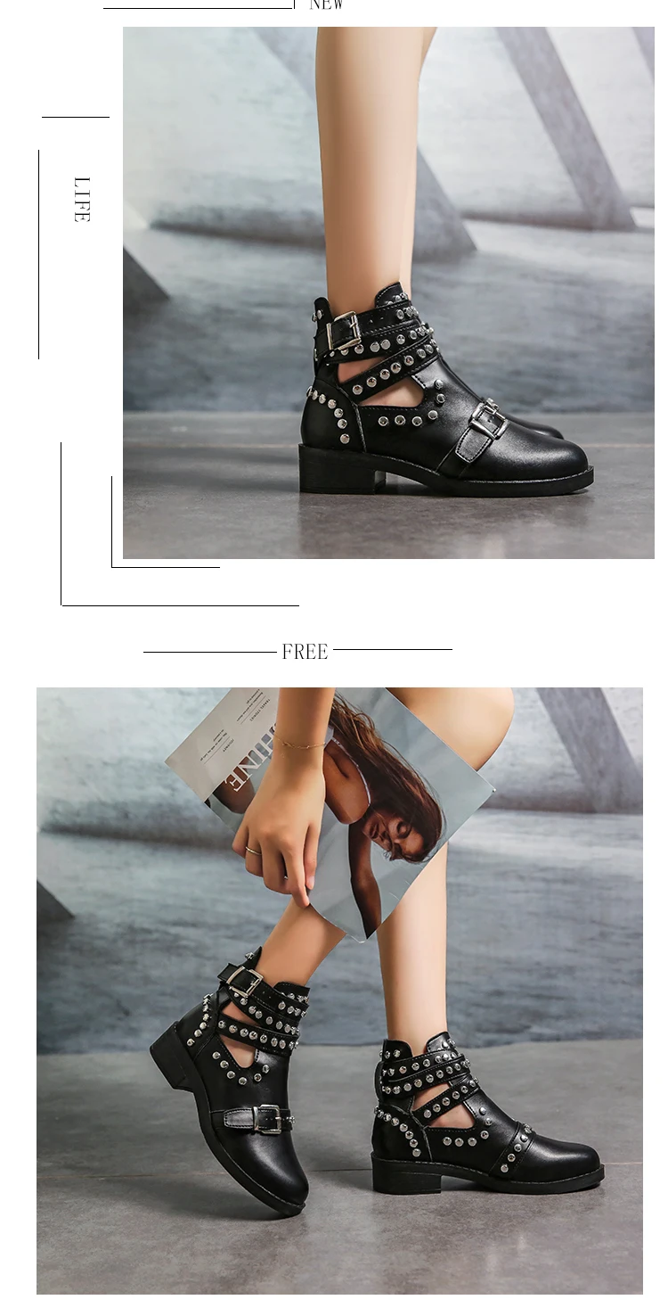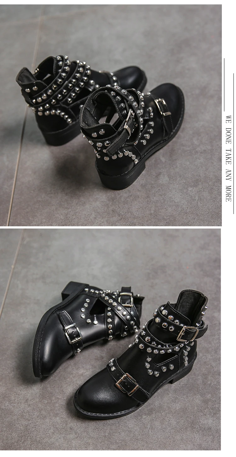 Новые женские ботинки с заклепками, ботинки из искусственной кожи, женская обувь с ремешком с пряжкой, повседневные ботинки с пряжкой, женская обувь, Черные ботильоны Botas Mujer