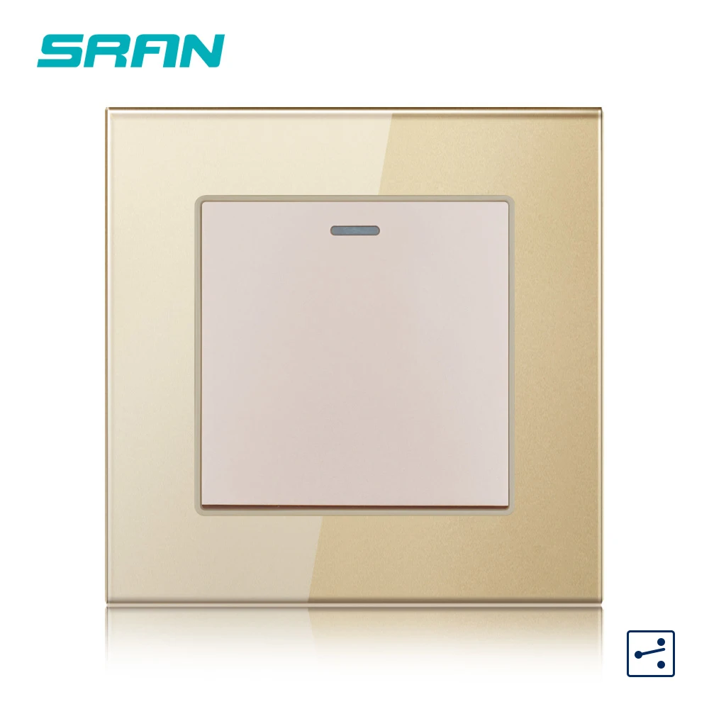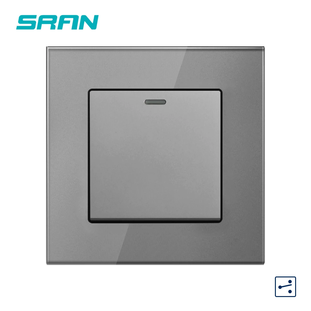 Настенный кулисный выключатель SRAN, Великобритания, 16 А, 250 В, Хрустальная панель из закаленного стекла, 86 мм х 86 мм, 1 комплект, 2 выхода, выключатель света для лестницы, прерывания