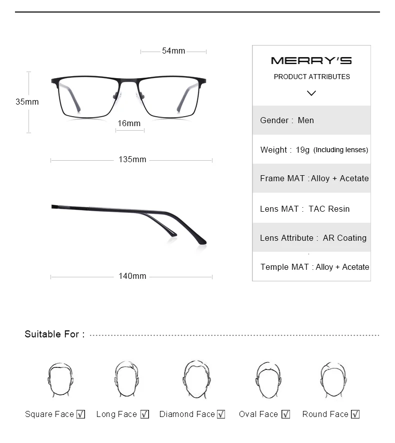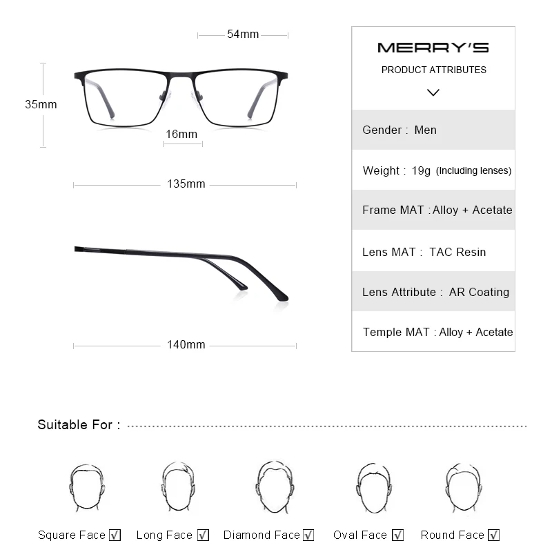 MERRYS дизайн, мужские очки из сплава , оправа, Мужские квадратные ...