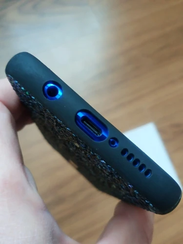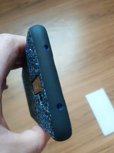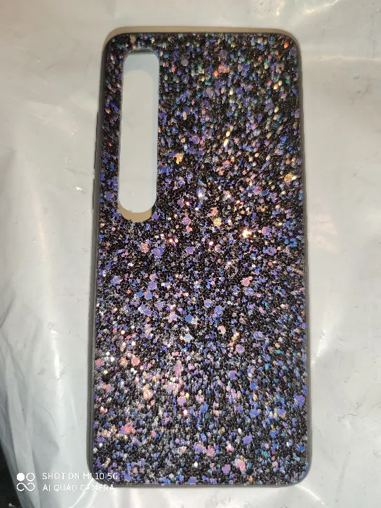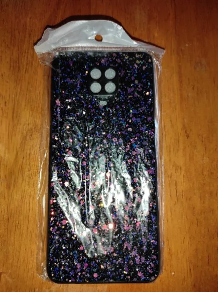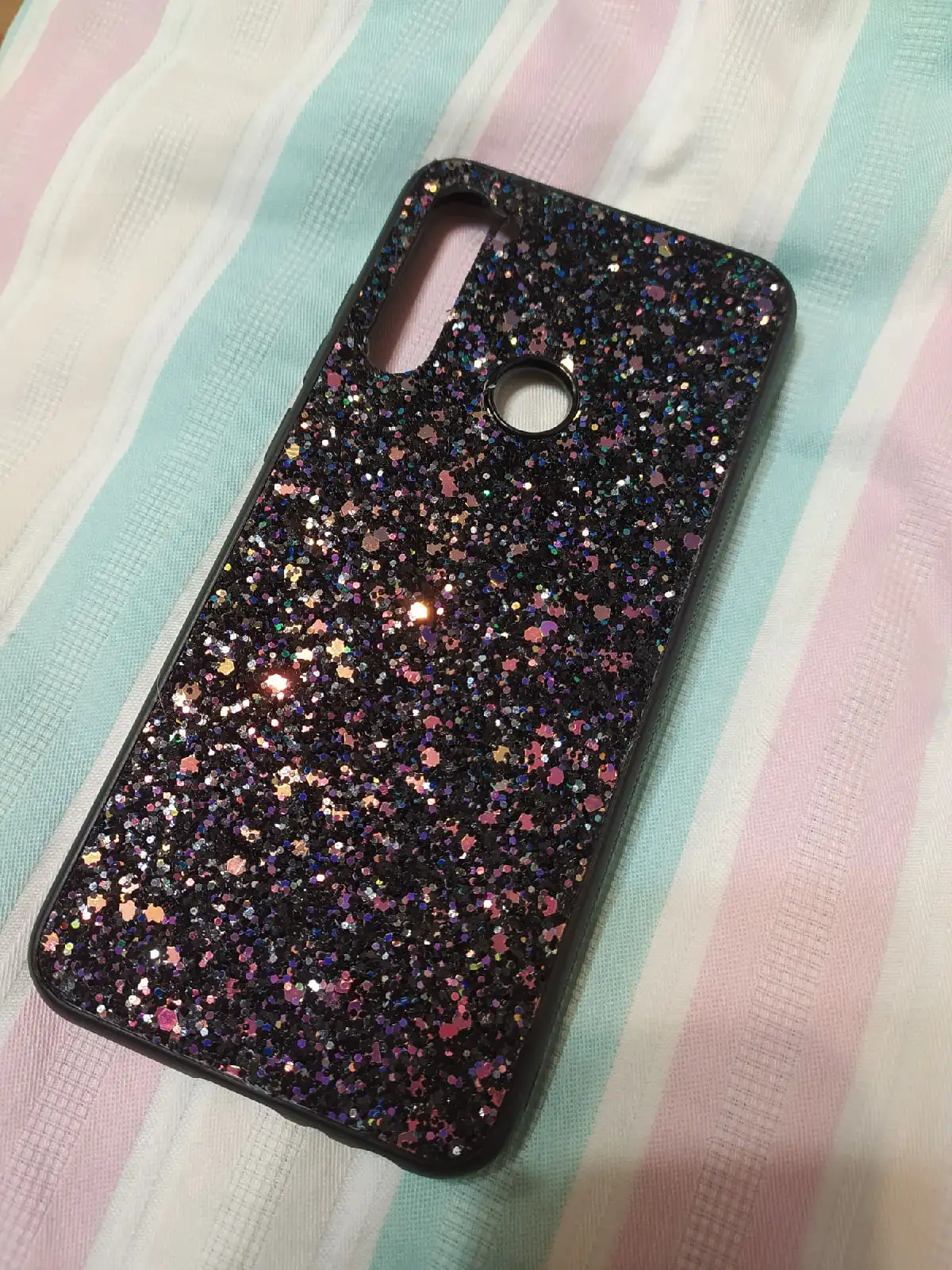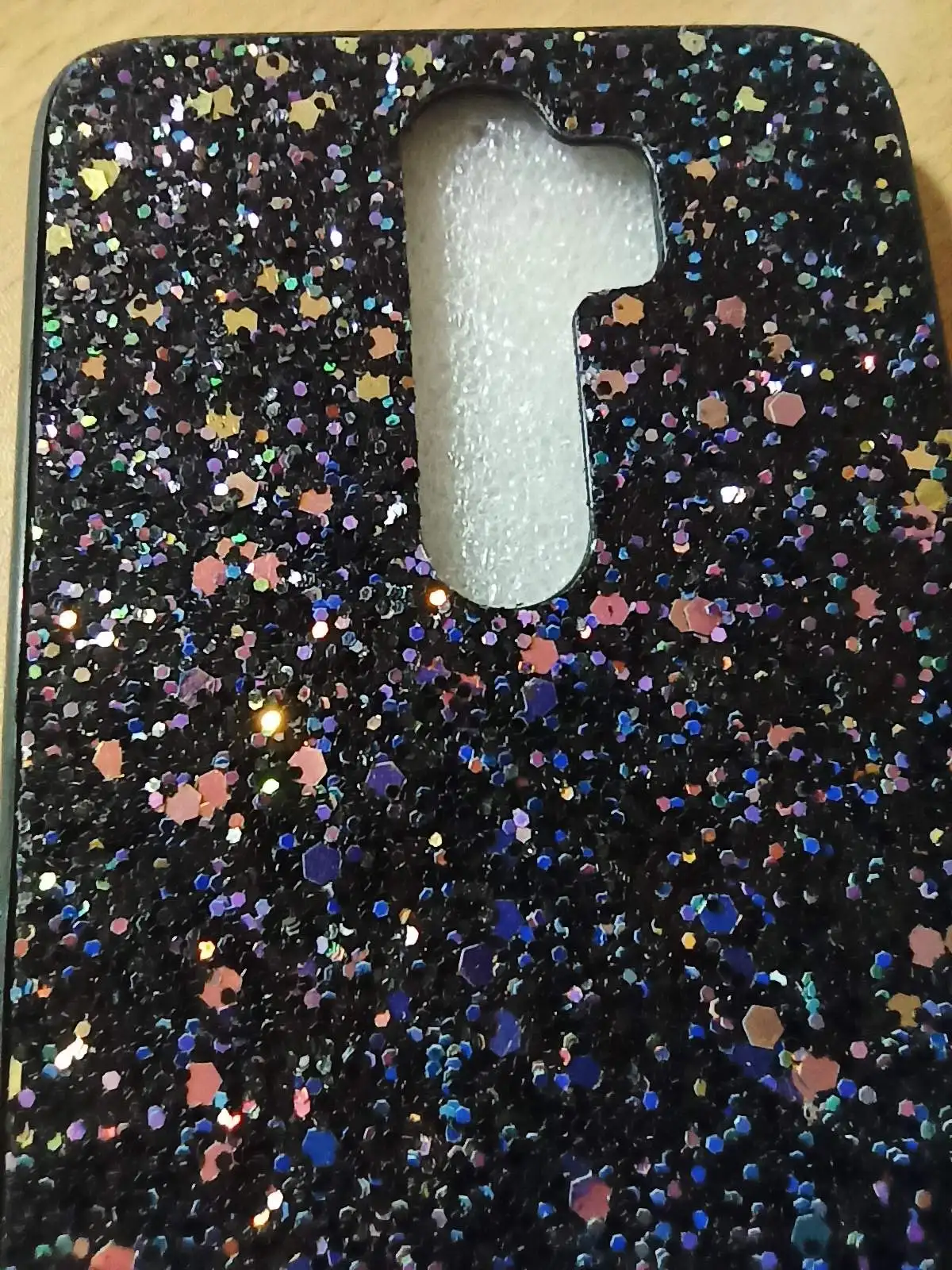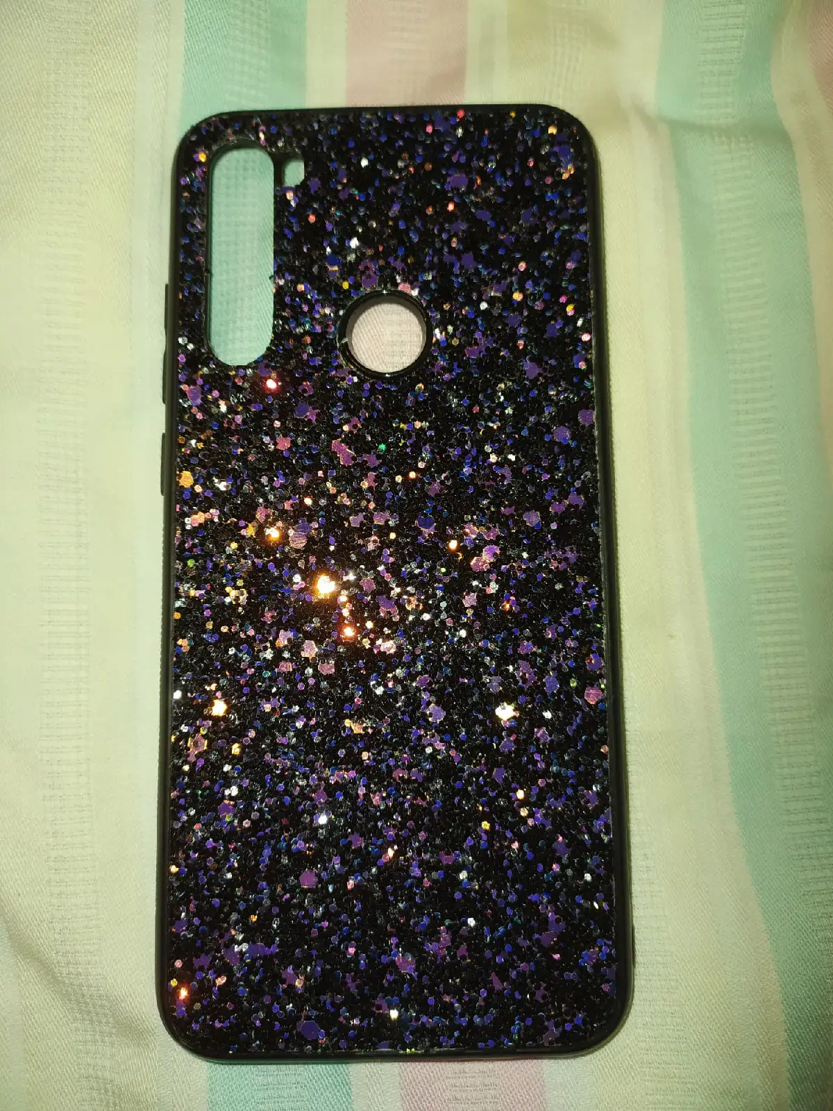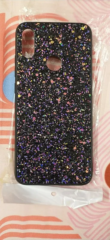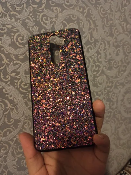 внешний вид у чехла не ахти. блёстки отклеиваются, где-то часть вздута и плохо проклеяна, между камерой и фанариком вообще кусочек отлетел. претензии к продавцу не имею, он отравил быстро и товар пришёл так же очень быстро.