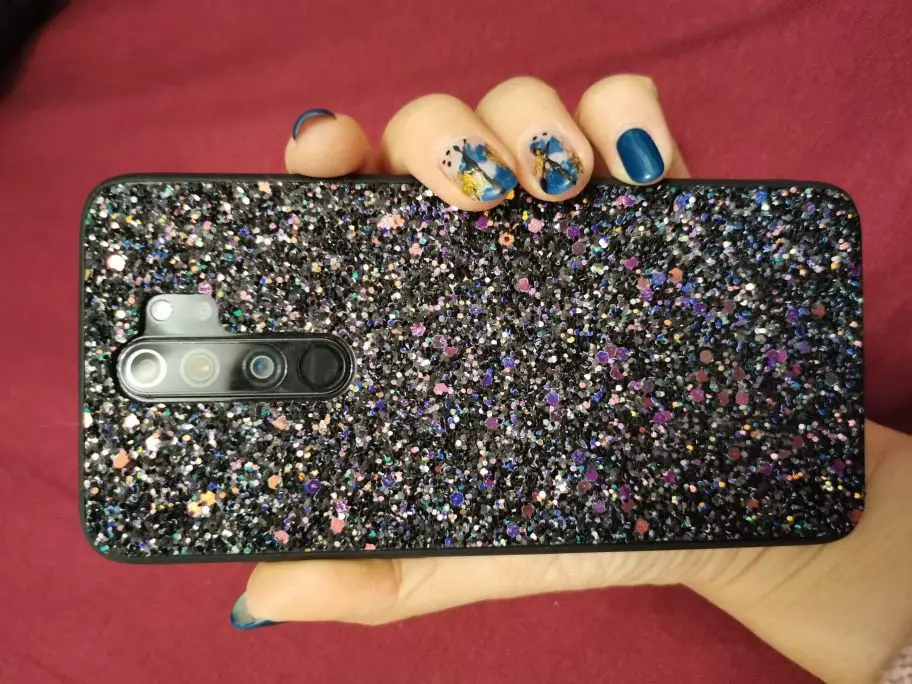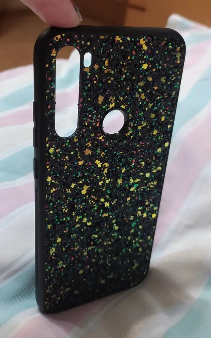 на фото образца чехла не видно что это просто блёстки ничем не покрытые, вообще качество хорошее все подошло (редми нот 9 )В Украину дошло за 3 недели.
