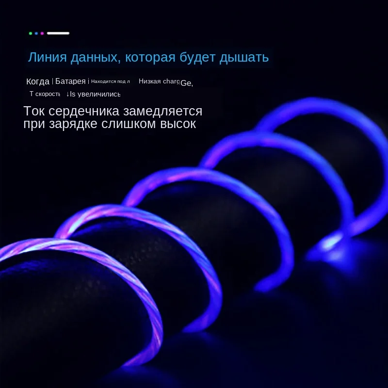 Светящийся светодиодный кабель 3A кабель для быстрой зарядки Micro ...