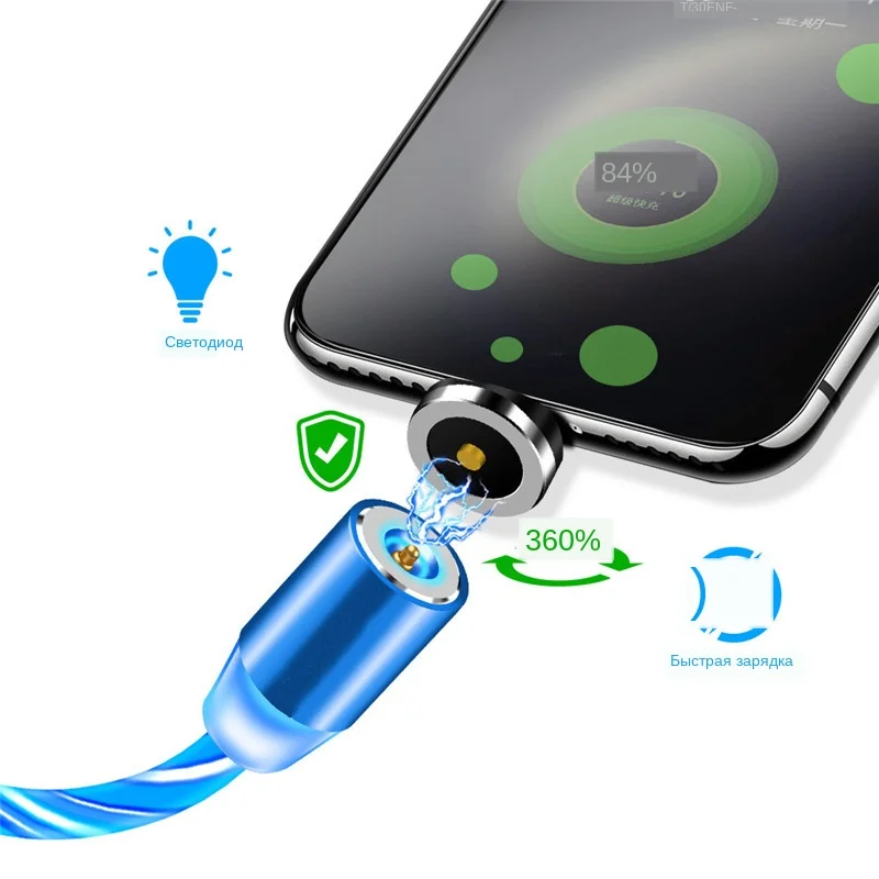Магнитный зарядный кабель, светящийся светодиодный светильник, быст...