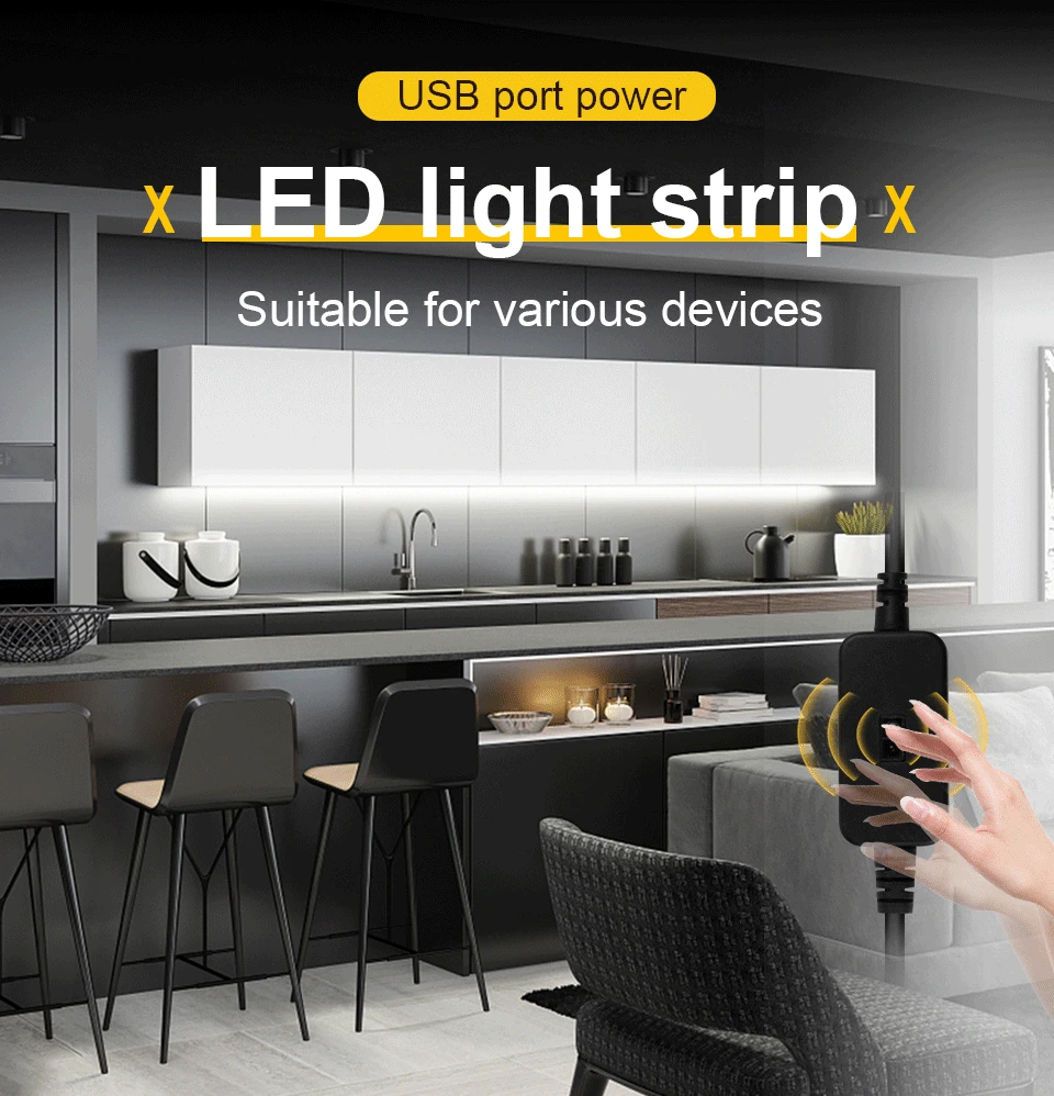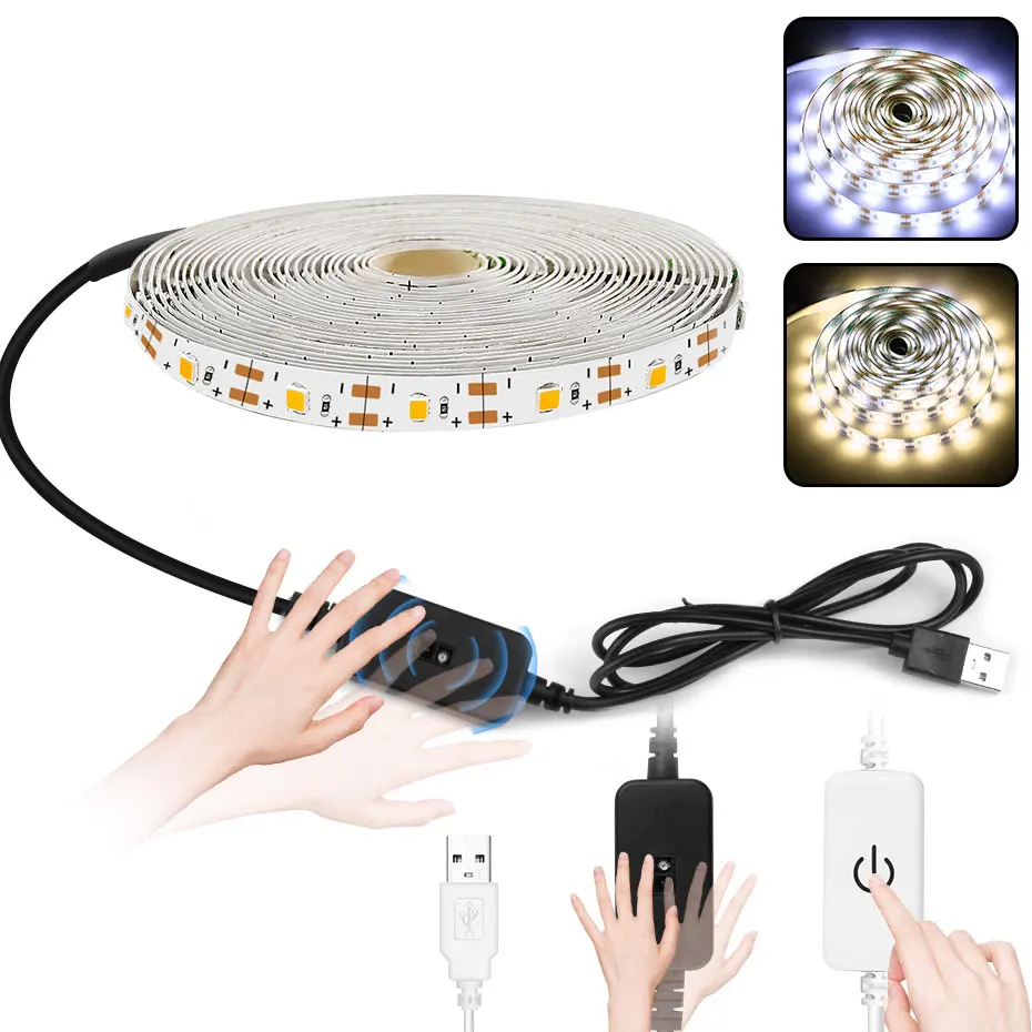 Водонепроницаемая светодиодная световая лента для зеркасветильник, 1 м, 2 м, 3 м, 4 м, 5 м, USB 5 В, сенсорный диммер или датчик движения рук, светодиодная лента для ванной комнаты, туалетного столика