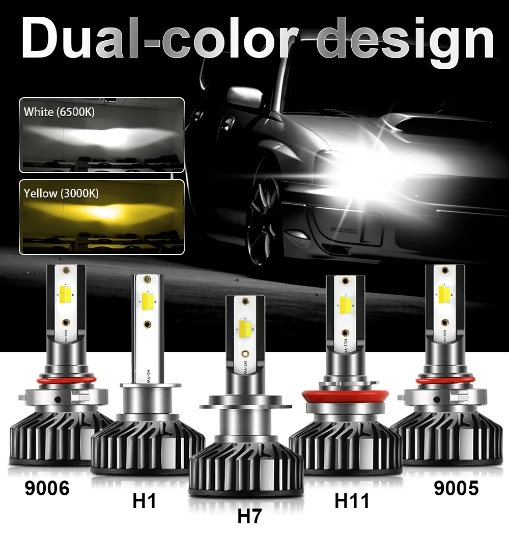BraveWay 3000K + 6500K H1 H3 H8 H9 H11 Комплект светодиодных фар для автомобиля H7 LED Canbus HB3 9006 HB4 Светодиодные лампы 12 В белые желтые противотуманные фары противотуманные фары птф светодиодные лампы