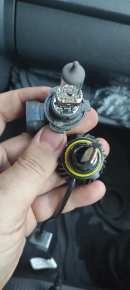 Третий раз и снова проблемка... Первый заказ поставил на машину жены, второй отправил обратно, сейчас пришлось колхозить прокладку, так как крепление, хоть и НВ4, но снова не такое. Лампы болтаются по причине отсутствия фиксирующие выпуклостей. Заказал отдельно переходники, а пока вырезал шайбы из упаковки от ламп. Держатся, светят хорошо, линии ровные.