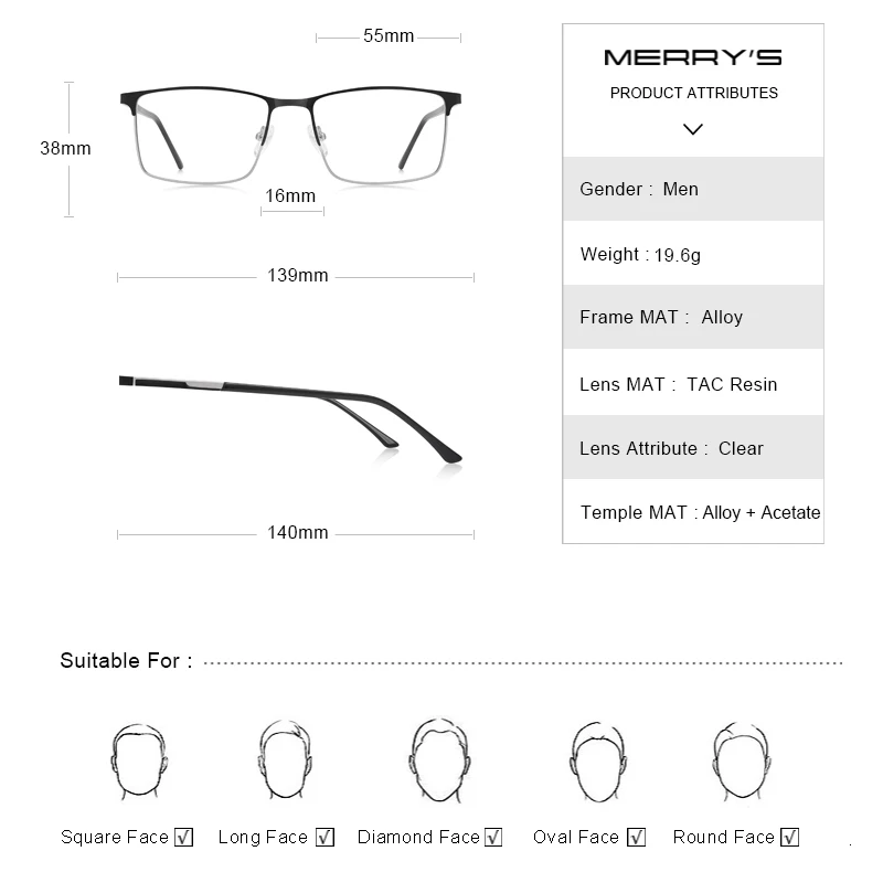 Дизайн MERRYS, мужские Модные оптические очки по рецепту, квадратные очки для близорукости, мужские очки в деловом стиле S2166PG