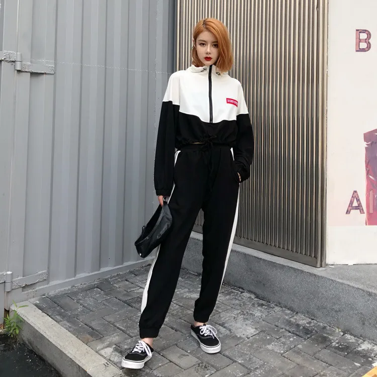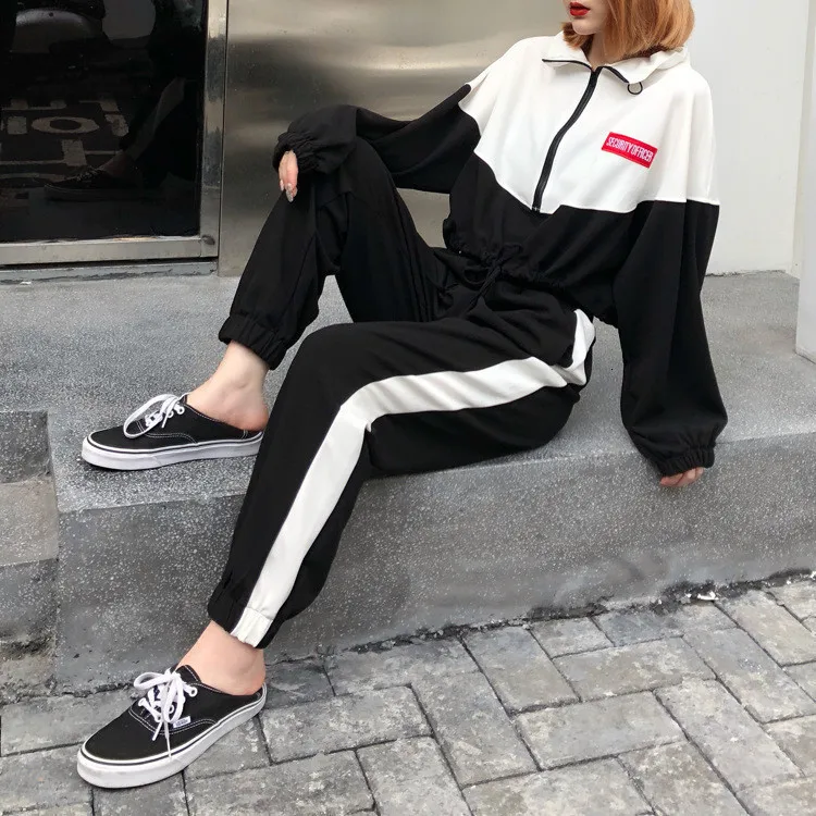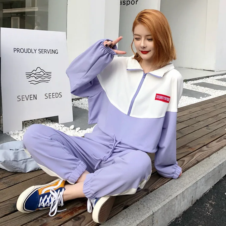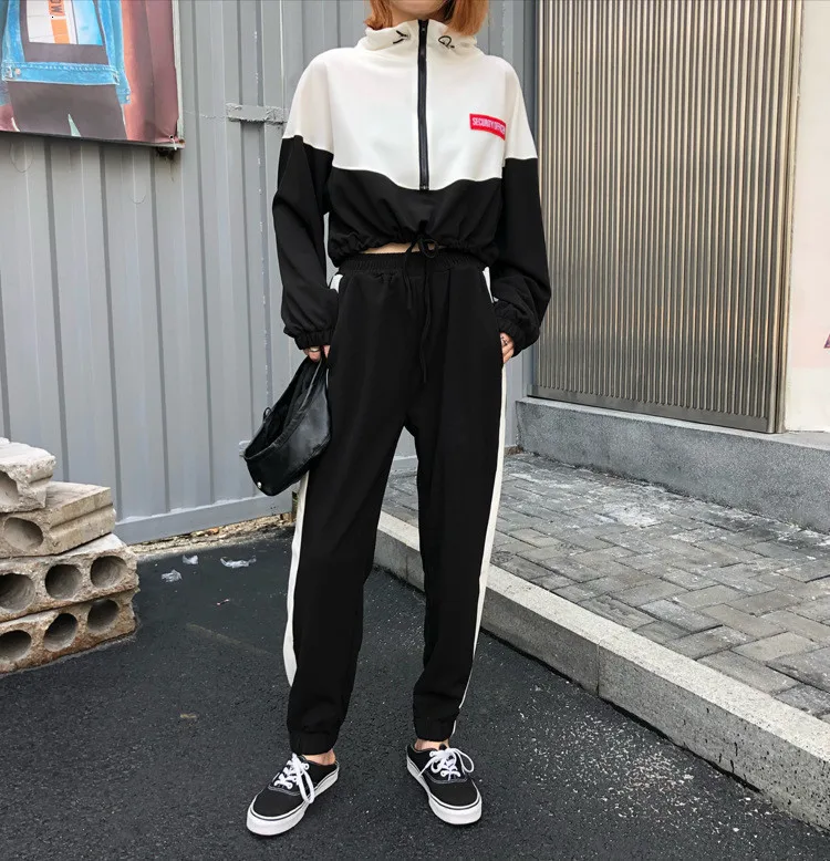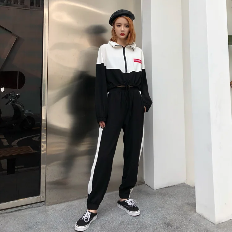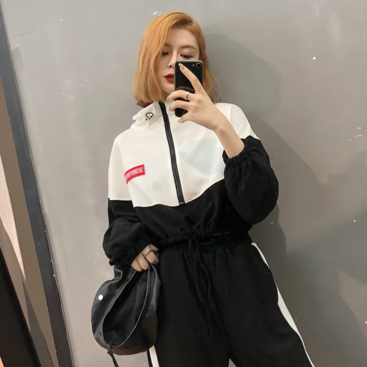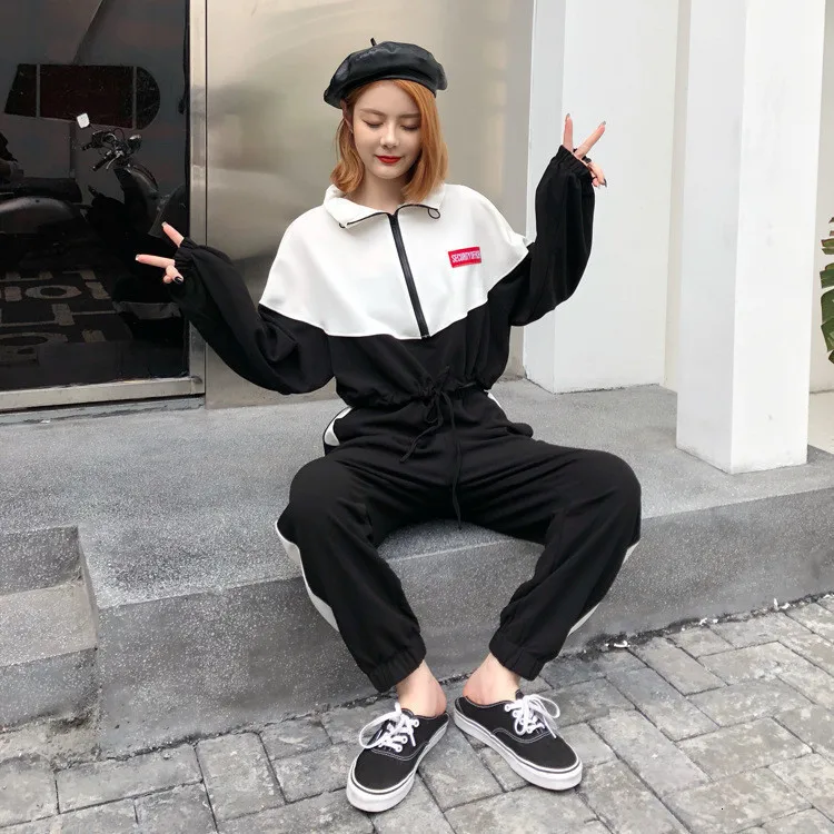 Женский Осенний пуловер на молнии, костюм из топа с длинным рукавом и коротких длинных брюк, костюм из двух предметов, костюм из двух предметов, одежда 2019