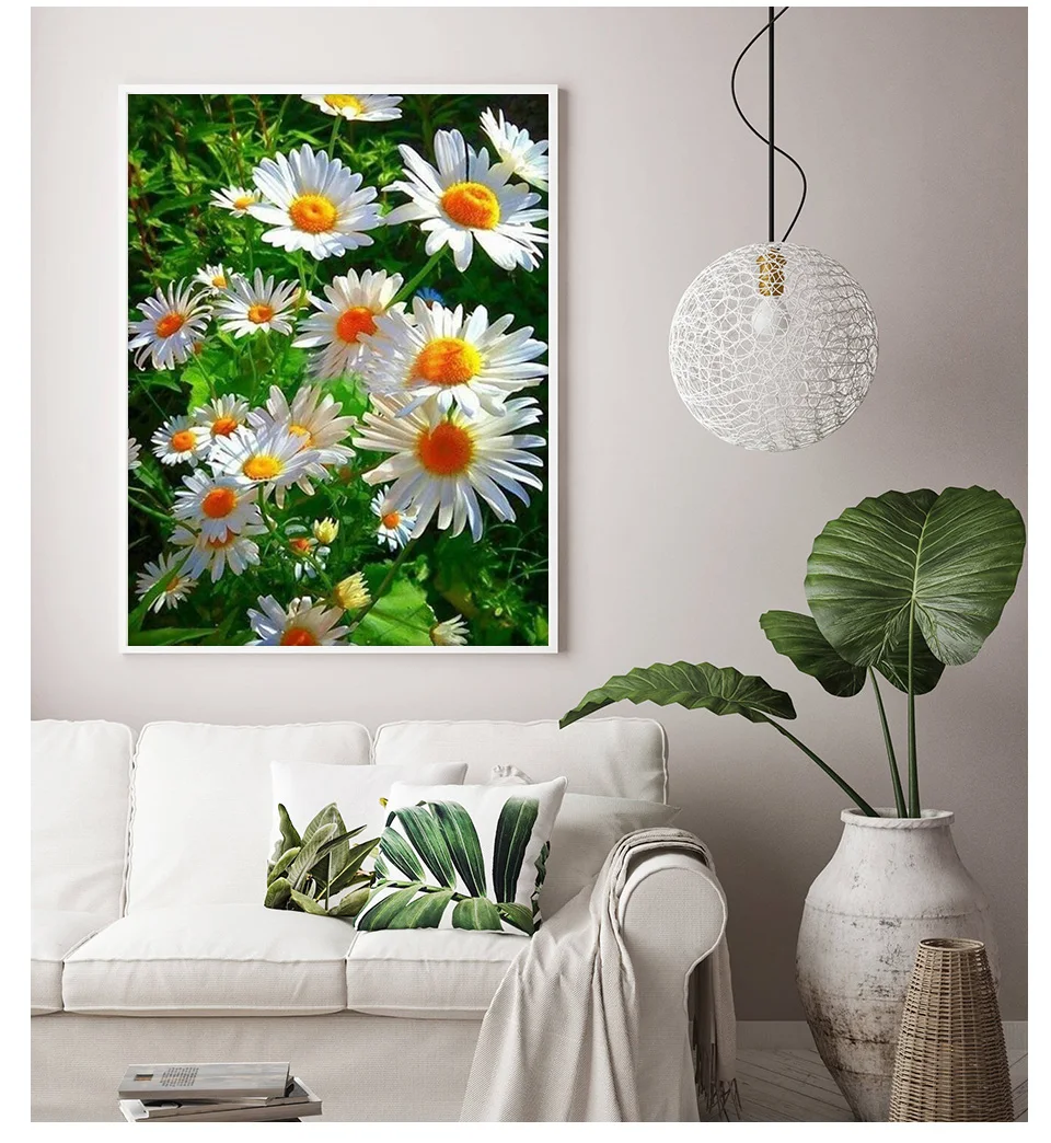 Алмазная 5D картина сделай сам с маргаритками и цветами, вышивка крестиком, картина с квадратными стразами, вышивка Стразы, домашний декор, распродажа