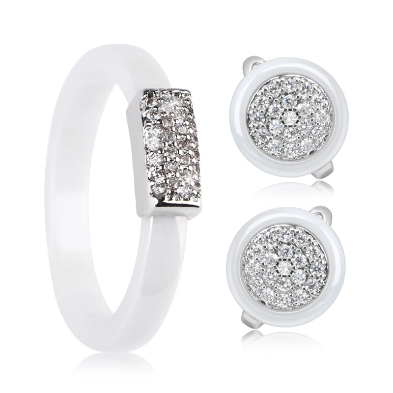 Набор женских керамических колец, серьги-гвоздики с фианитами