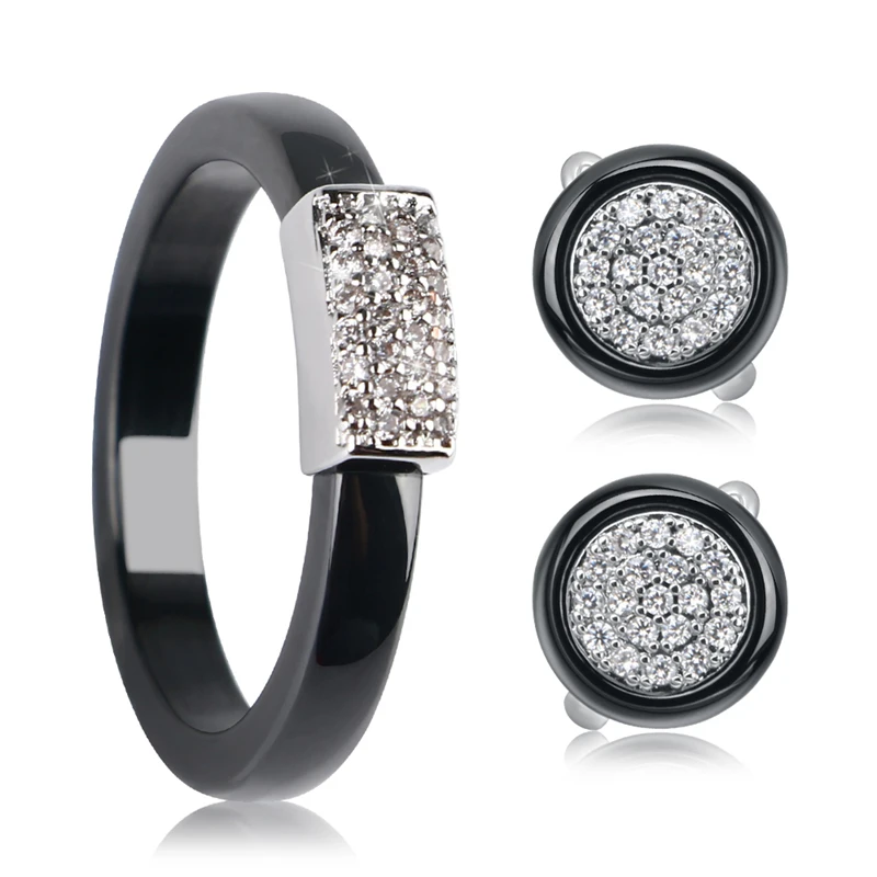 Набор украшений из керамического кольца и серег, 2 мм, черный и белый цвета, эффектные ювелирные украшения для женщин, подарок на день рождения