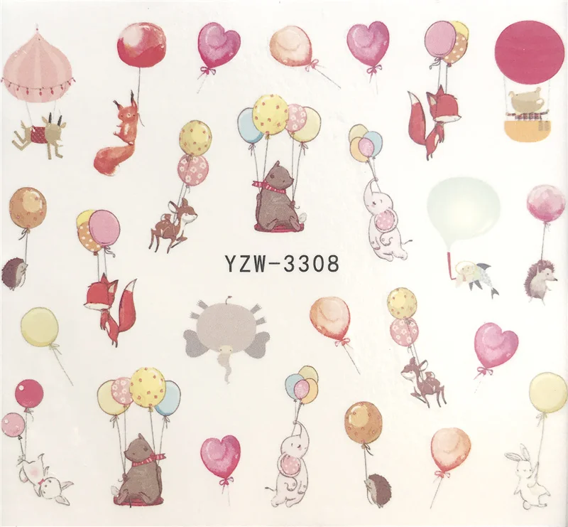 1 лист водных стикеров для ногтей, черные Мультяшные животные, флам...