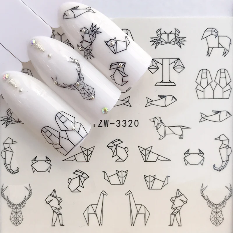 Оригами, животные, наклейки для ногтей, аппликация для ногтей, водн...