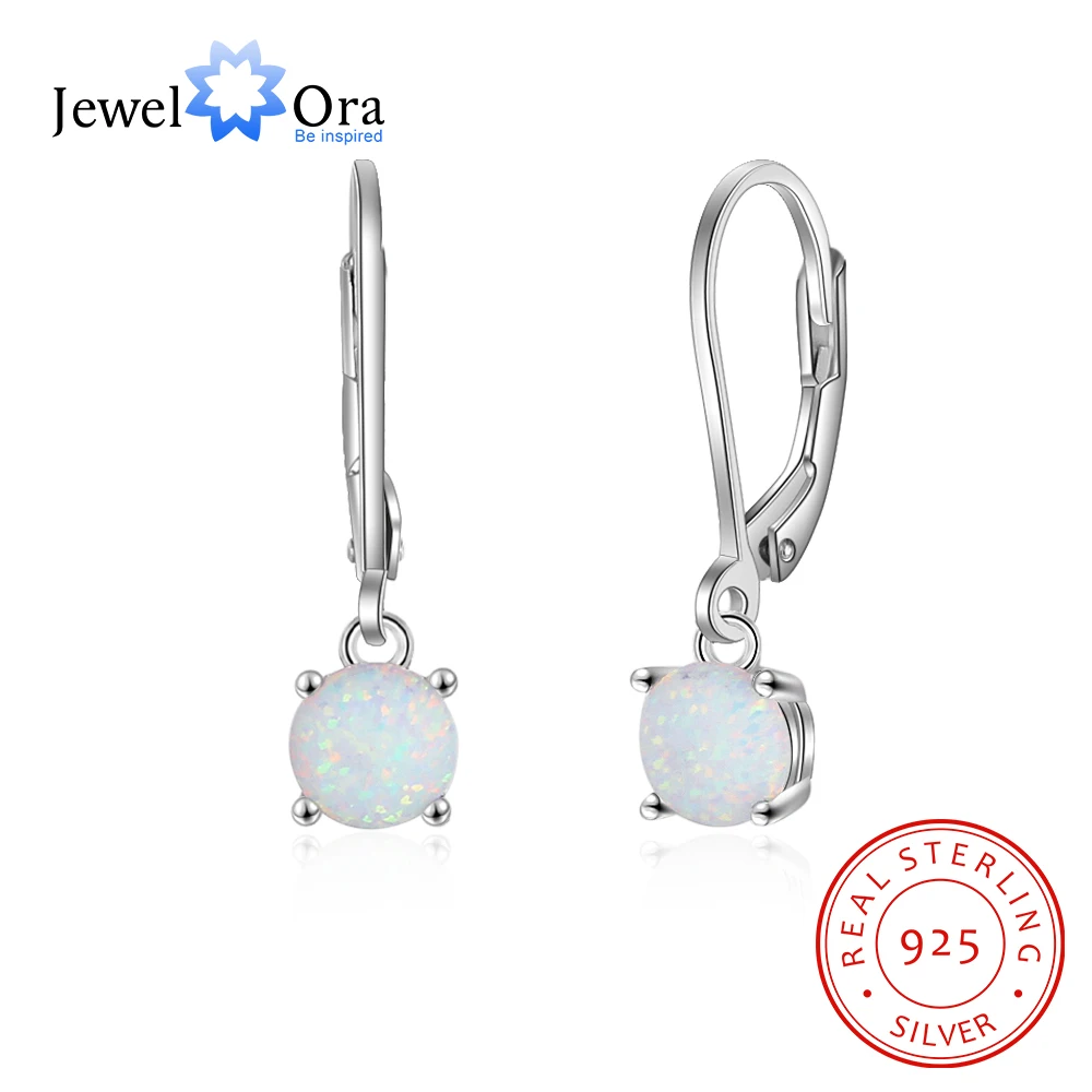 Женские серьги-кольца из стерлингового серебра 925 пробы с белым опалом, модные свадебные серьги, подарок для матери (Jewelora EA103241)