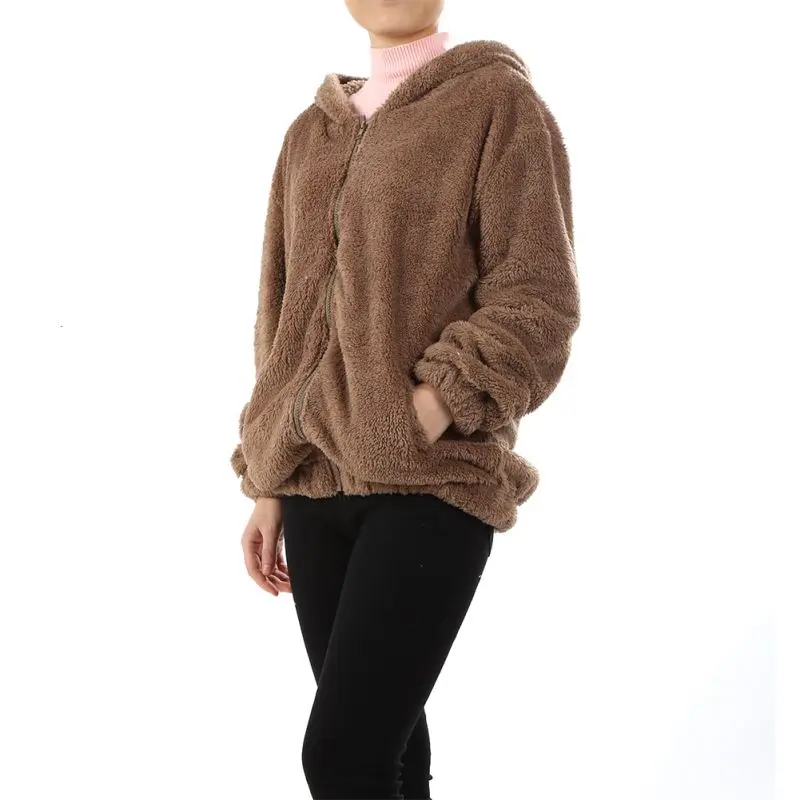 Теплая верхняя одежда для девочек, зимнее женское худи на молнии, свободные пушистые худи с ушками медведя, куртки с капюшоном