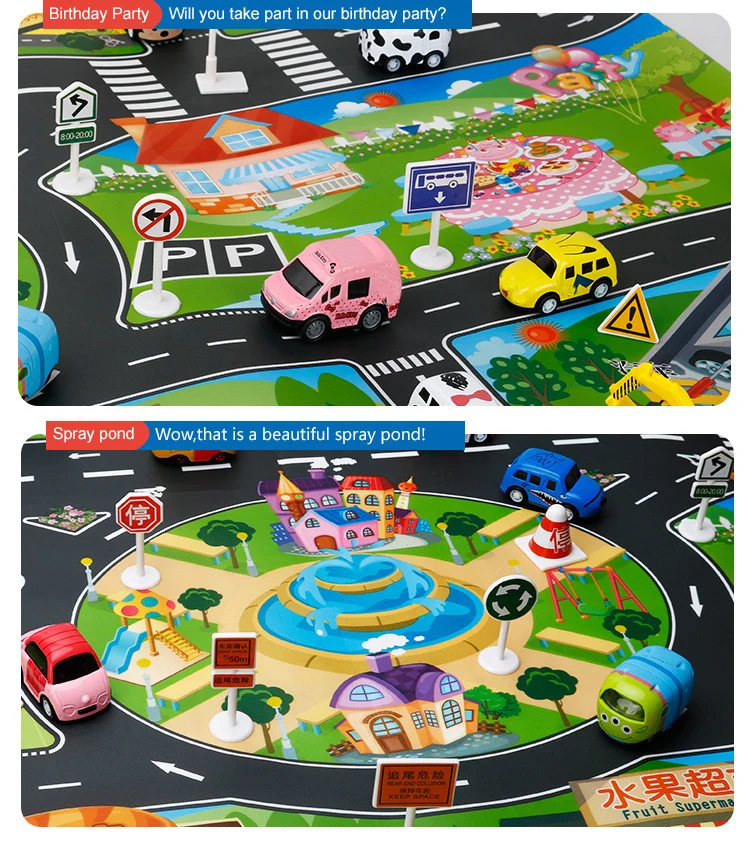 Большой коврик для детского автопарка, развивающий коврик для ползания, игровой коврик, игрушки, игровой коврик, пазлы ZXH