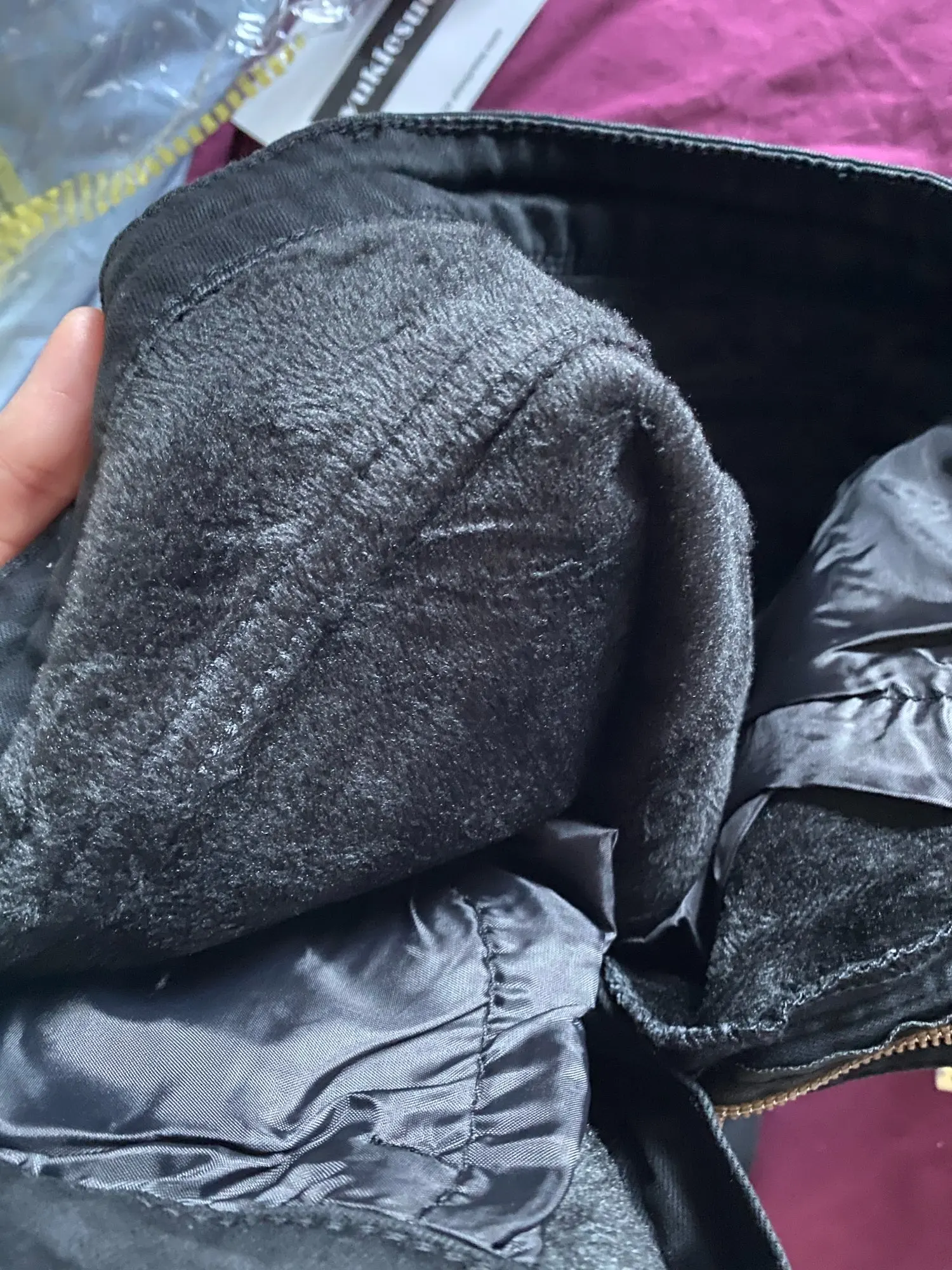 Меховая подкладка тоньше, чем ожидалось. Но в целом, это хорошая пара джинсов. Облегающий крой, цвет такой же, как в описании. Материал приятный на ощупь и стоит своих денег. Не уверен, что он защитит меня от холода. Мне придется постирать и носить его немного больше, чтобы увидеть, как он получится.